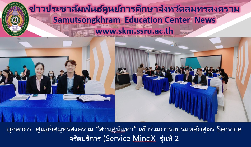 วันนี้ (12 พ.ย.63) นางสาวอภิญญา มุกดาธนพงศ์ รักษาการผู้จัดการหอพักนักศึกษา พร้อมด้วย นายอริยเมศฐ์ ศิริฤกษ์รัตนา เจ้าหน้าที่บริหารงานทั่วไป ศูนย์การศึกษาจังหวัดสมุทรสงคราม มหาวิทยาลัยราชภัฏสวนสุนันทา เข้าร่วมการอบรมหลักสูตร Service จริตบริการ (Service MindX รุ่นที่ 2 ซึ่งจัดขึ้นโดยมหาวิทยาลัยราชภัฏสวนสุนันทา วิทยาเขตนครปฐม