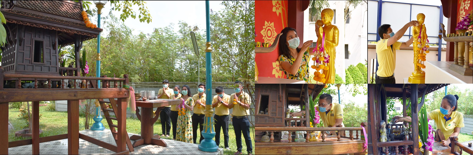 On April 13th, 2020 at 11.00am, Student Dormitory, Samut Songkhram Education Center, Suan Sunandha Rajabhat University, led by Asst. Prof. Dr. Pimporn Thongmuang, Acting Director of Samut Songkhram Education Center together with Mr. Eakkachon Noyngern, Head of the Office, Mr. Jirayus Poolsawat, Acting Business Manager, and Miss Apinya Mukdathanaphong, Acting Dormitory Manager did the bathing on Buddha images and Spirit House on auspiciousness occasion on Thai New Year, Songkran Day 2020, within the dormitory.