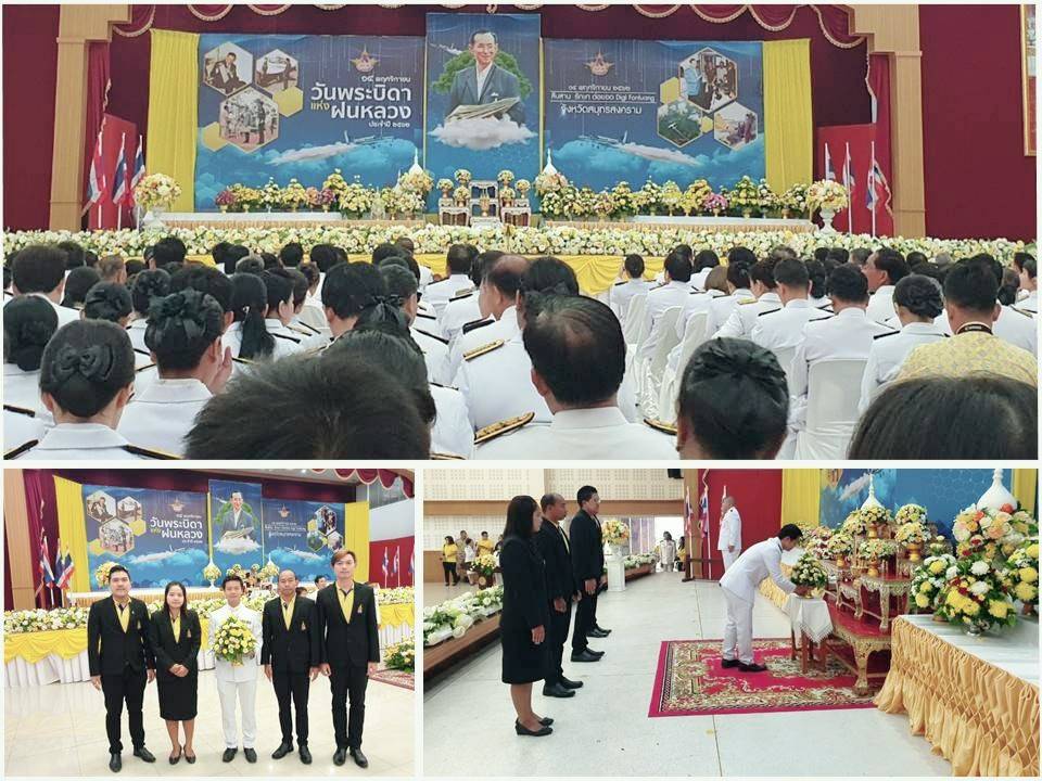 On November 14th, 2019 at 09.00am, Mr. Eakkachon Noyngern, Head of the Office of Samut Songkhram Education Center Suan Sunandha Rajabhat University, led a team of staff to attend the ceremony to commemorate the royal grace of His Majesty the King Maha Bhumibol Adulyadej the Great, on the occasion of "Father of the Royal Rainmaking Day" of the year 2019. Mr. Charas Bunnasa, Governor of Samut Songkhram Province presided over the ceremony of laying fresh flowers In front of the image of His Majesty King Bhumibol Adulyadej at the Phiphat Mongkhon Auditorium, Samut Songkhram Provincial Administrative Organization, Mueang District, Samut Songkhram Province.