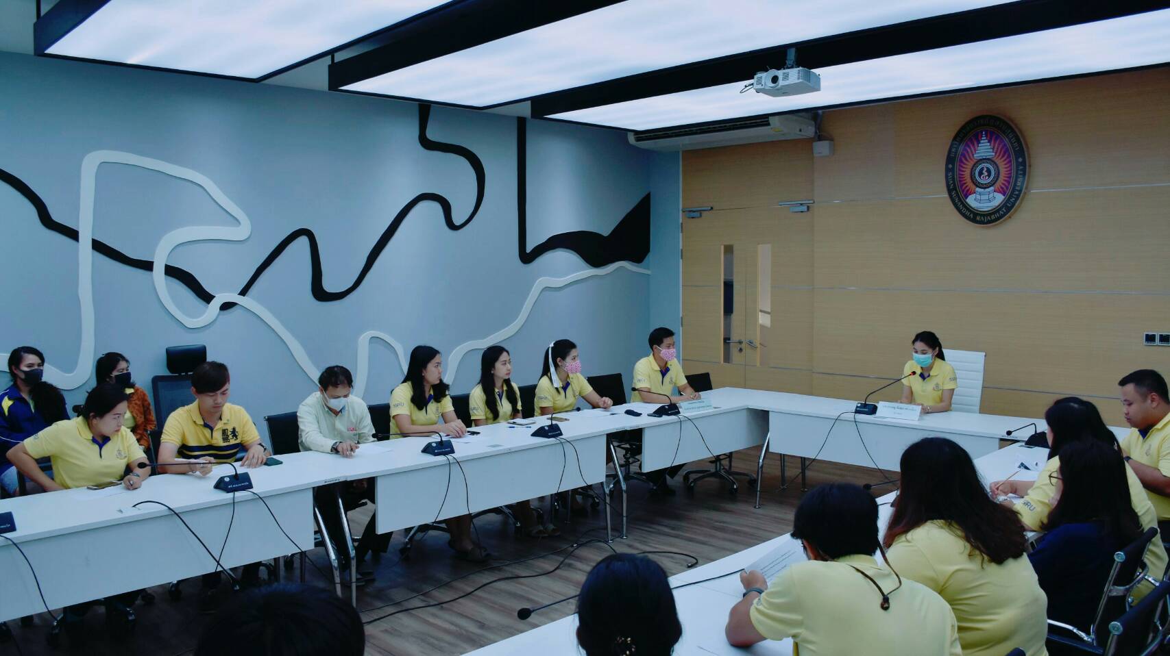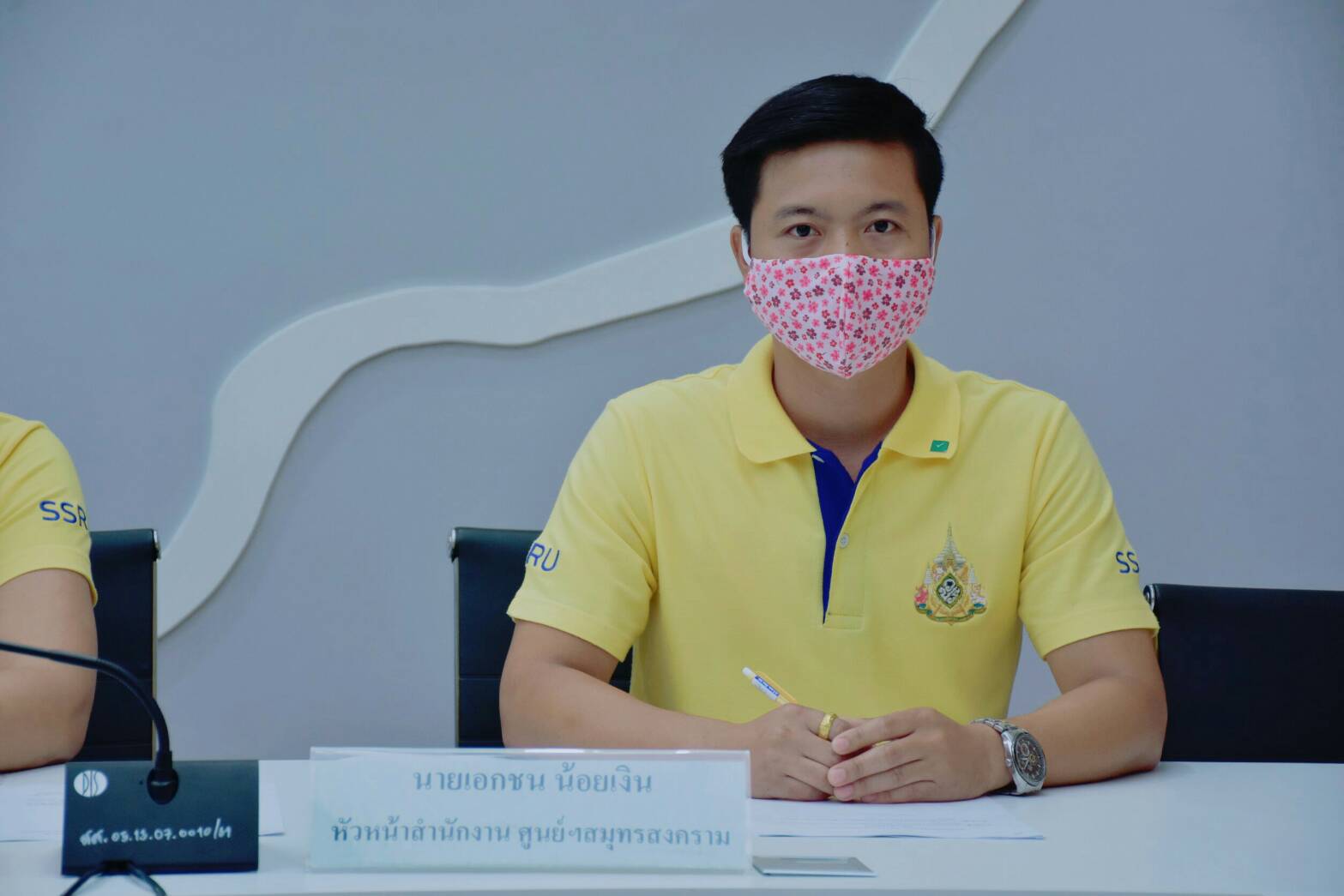 On March 16th, 2020 at 03.00pm, Asst. Prof. Dr. Pimporn Thongmuang, Director of Samut Songkhram Education Center, Suan Sunandha Rajabhat University organized a meeting to provide knowledge to increase the confidence of personnel to prevent the COVID-19 and to build confidence among personnel and increase the frequency plan for disease outbreak prevention in the area of the Samut Songkhram Education Center, such as College of Allied Health Sciences, Center of Excellence in Elderly Care, various school buildings and student residences by providing a screening point in the relevant area, setting up service points for cleaning gel, and requiring cleaning staff to increase cleaning frequency on the frequently touched spots.
