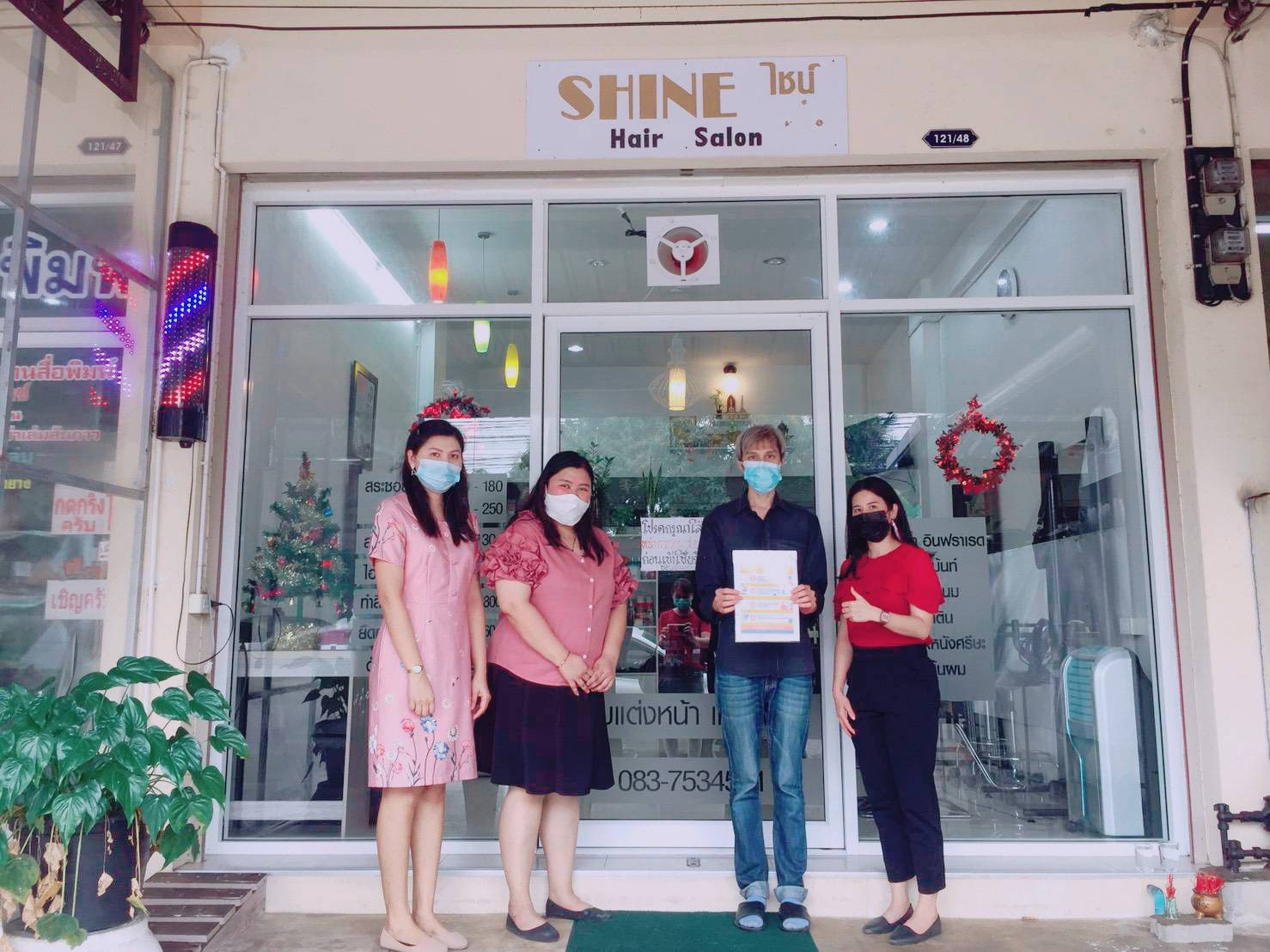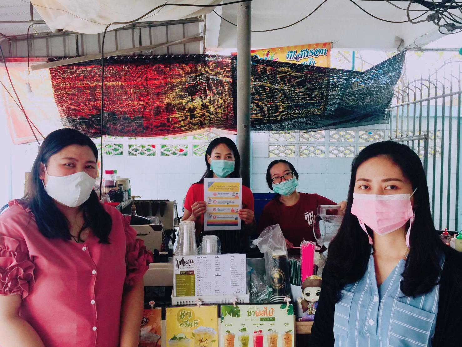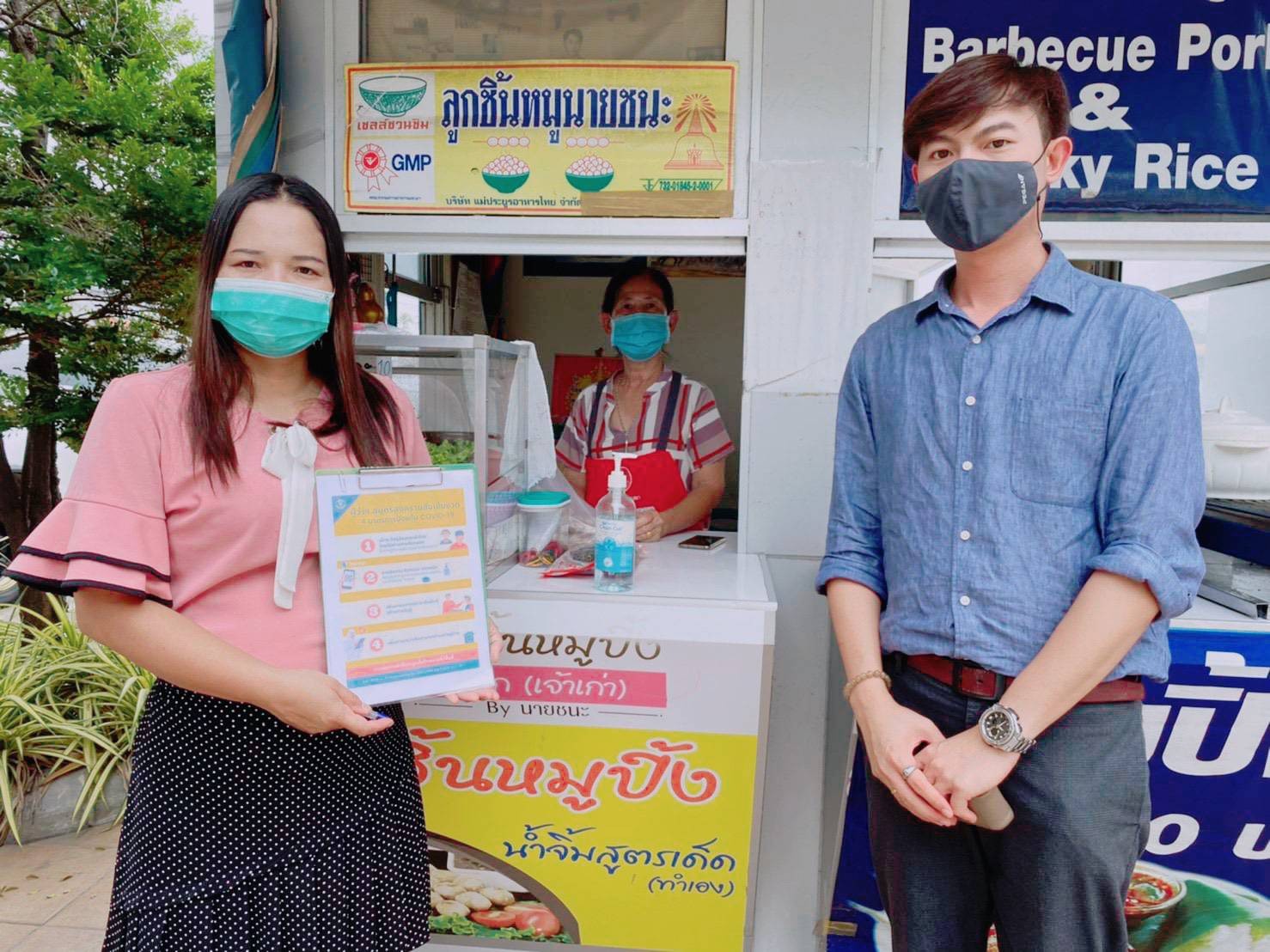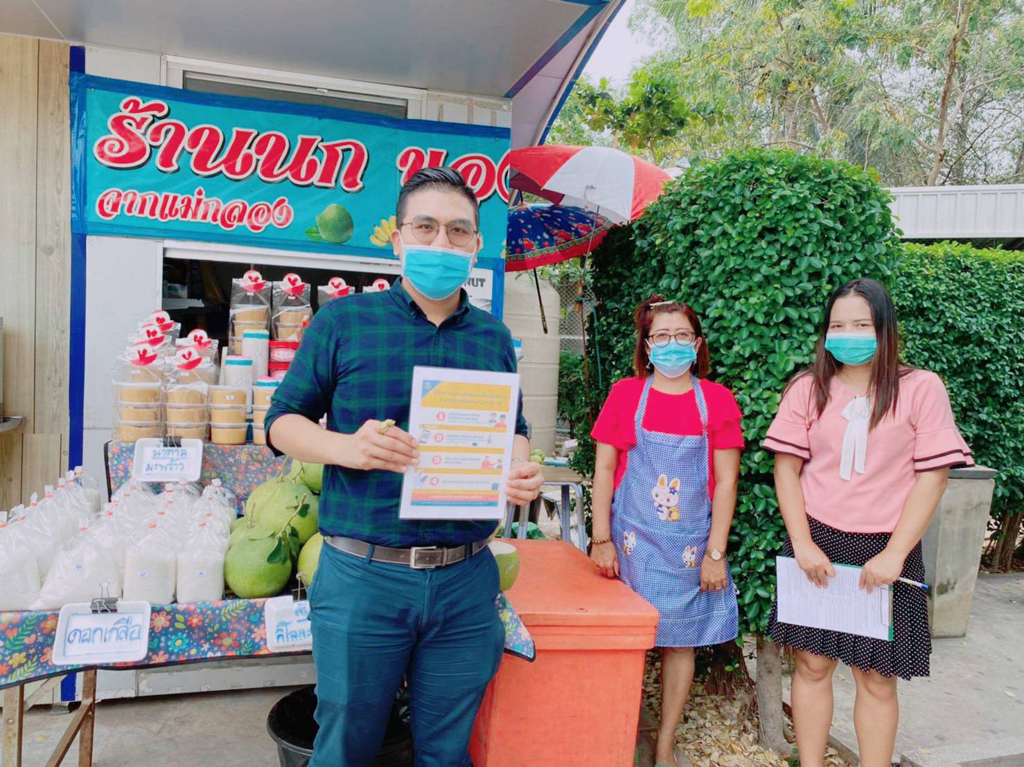 On December 15th, 2020, Samut Songkhram Education Center, Suan Sunandha Rajabhat University, led the team to monitor and evaluate the performance of the measures of the COVID-19 Center to reduce risks in the community area of Samut Songkhram Province, for shops and customers to wear fabric or surgical masks regularly, to clean the frequently touched surfaces, to have alcohol gel or disinfectant service points, to have a registration point for entry-exit through the Thai Chana application, and to have social distance strictly.