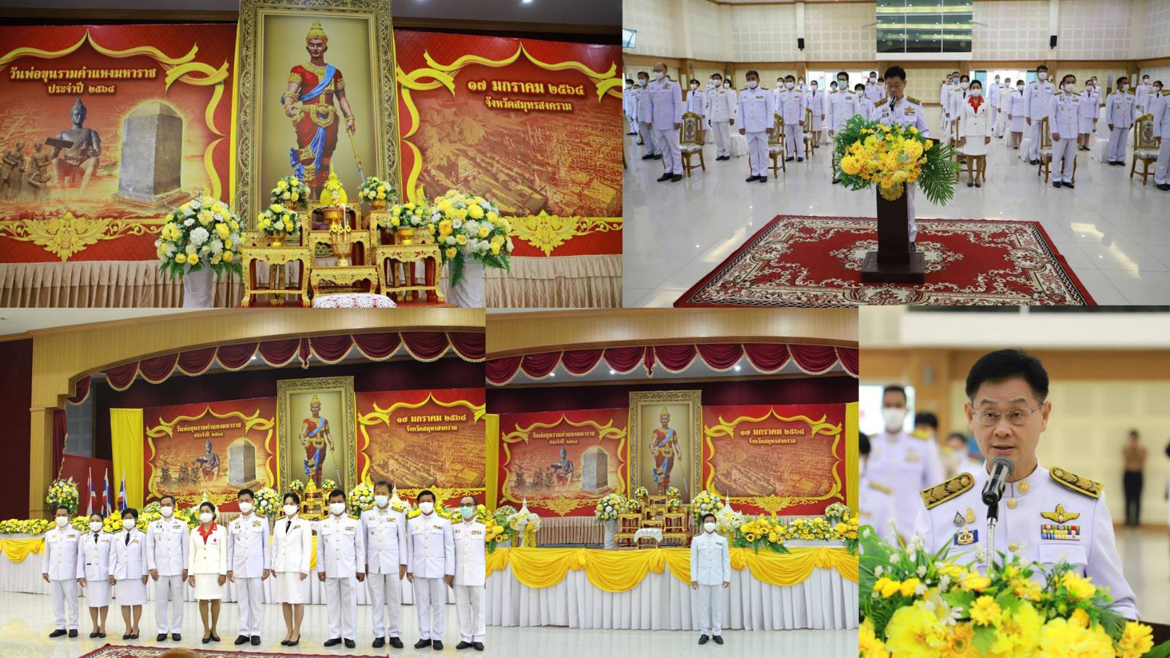 On Sunday, January 17th, 2021 at 08.00am, Mr. Eakkachon Noyngern, Chief of Samut Songkhram Education Center, Suan Sunandha Rajabhat University attended the royal worshiping ceremony of King Ramkhamhaeng the Great on King Ramkhamhaeng the Great Day 2021 to honor and commemorate the royal grace of King Ramkhamhaeng and show gratitude and loyalty to King Ramkhamhaeng the Great who had patronage and performed royal duties to benefit the country. Mr. Charas Bunnasa, Samut Songkhram Governor presided over the ceremony to show loyalty to King Ramkhamhaeng the Great that had made significant contributions to the prosperity of the Thai nation. King Ramkhamhaeng the Great, the King of the Phra Ruang Royal Dynasty, Sukhothai period, sustained the country with benevolence towards the people and created important cultural and artistic heritage of the nation. The most important national heritage of King Ramkhamhaeng the Great was the Thai alphabet since 1826 B.E., which is the origin of the Thai alphabet that is used nowadays.