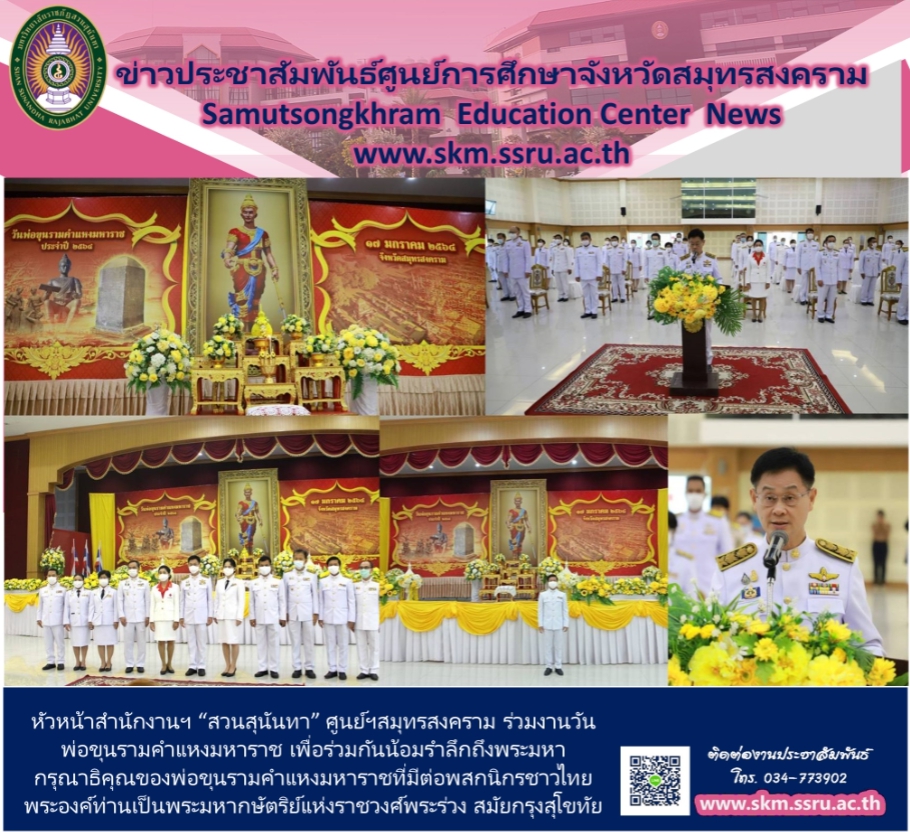 On January 18th, 2021 at 08.00am, Mr. Eakkchon Noyngern, Chief of the Office, Samut Songkhram Education Center attended the royal worship ceremony on Yuthahatthi Day of King Naresuan the Great, which refers to the day of commemoration that King Naresuan the Great made on Monday, 2 months, 2 ram, lunar month, H.M. 954 or January 18th, B.E. 2135. The Cabinet later approved on November 29th, 2005 to determine the date of King Naresuan the Great and a state day ceremony to be on January 18th of each year as "Yuthahatthi" Day. Mr. Charas Bunnasa, Samut Songkhram Provincial Governor presided over the ceremony of laying flowers and offering royal worship in front of King Naresuan the Great statue in the ceremony "King Naresuan the Great's Yuthahatthi Day" to honor and commemorate His Majesty the King who has performed royal duties that benefit the Thai people as well as promoted independence for the whole nation, while the Deputy Governor of the Province, Provincial Police Commander, Deputy Director of Internal Security in Samut Songkhram Province, chiefs of government agencies Chief of State Enterprise Sheriff of all three districts, Provincial Administrative Organization President, the Mayor of Samut Songkhram, and more than 80 organizations, also attended the ceremony at the Pipat Mongkol Auditorium, Samut Songkhram Provincial Administrative Organization.