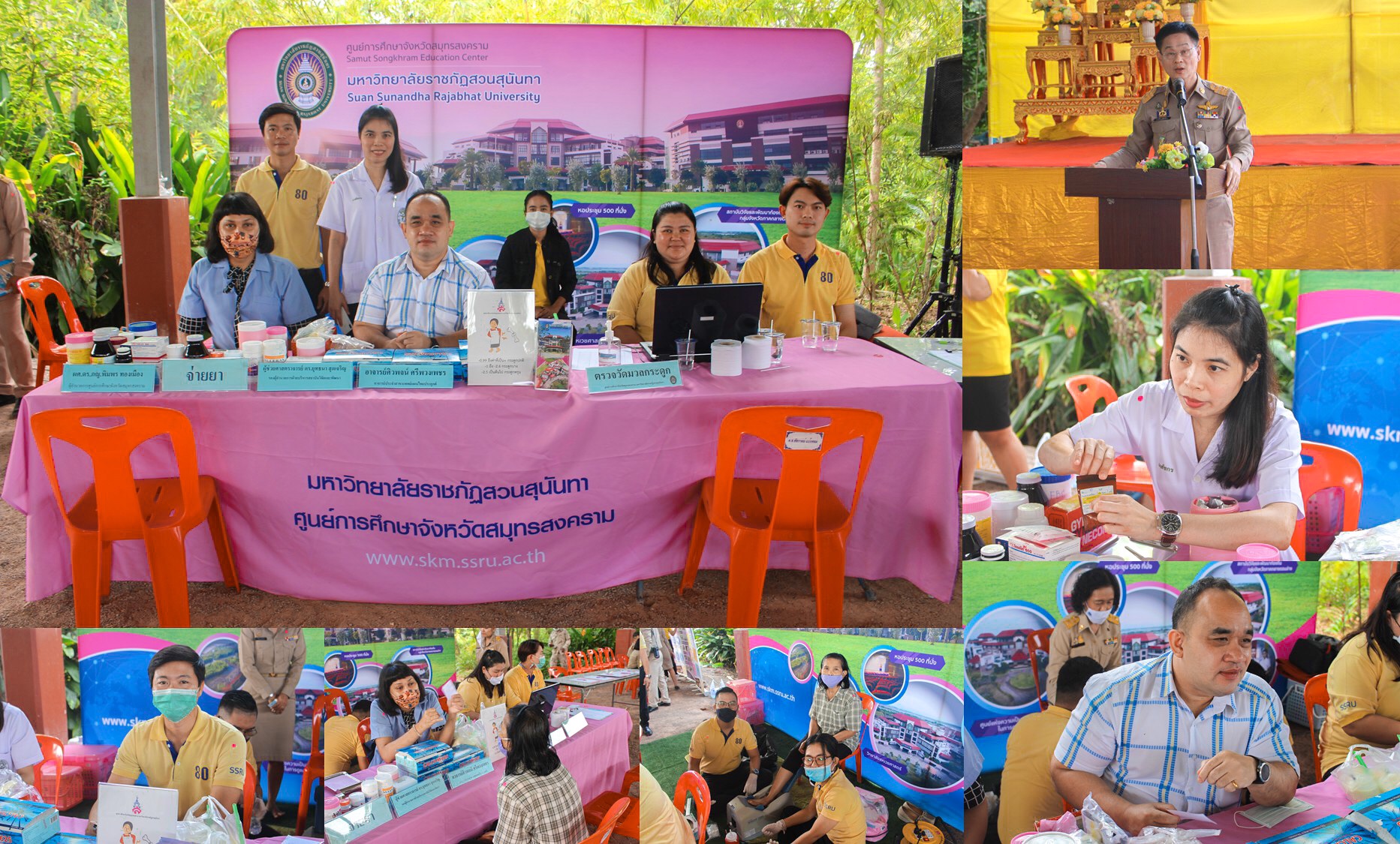 On October 26th, 2020 at 09.30am, Samut Songkhram Education Center, Suan Sunandha Rajabhat University led by Asst. Prof. Dr. Pimporn Thongmuang, Acting Director, along with personnel, participated in the project to promote loyalty to the monarchy and the project of distress treatment and to increase happiness, in Samut Songkhram Province in Fiscal Year 2021. There were density measurement service units and bone mineral density (BMD) to local residents at Plai Phong Pang Subdistrict, Amphawa District, Samut Songkhram Province. Mr. Charas Boonnasa, Samut Songkhram Governor chaired the project to improve the quality of life, livelihoods, and efficiency of personnel and local people in Samut Songkhram Province by providing bone mass measurement services and primary care service at Plai Phong Pang Subdistrict Administrative Organization.