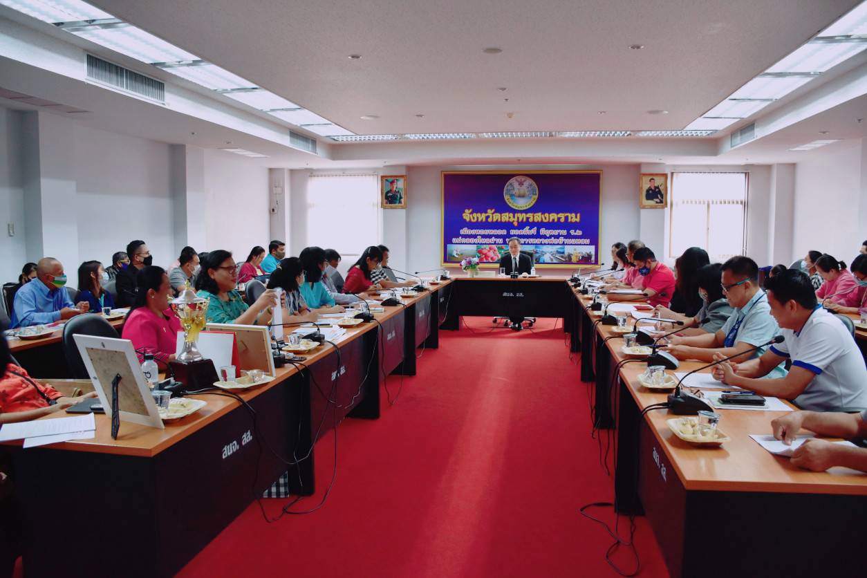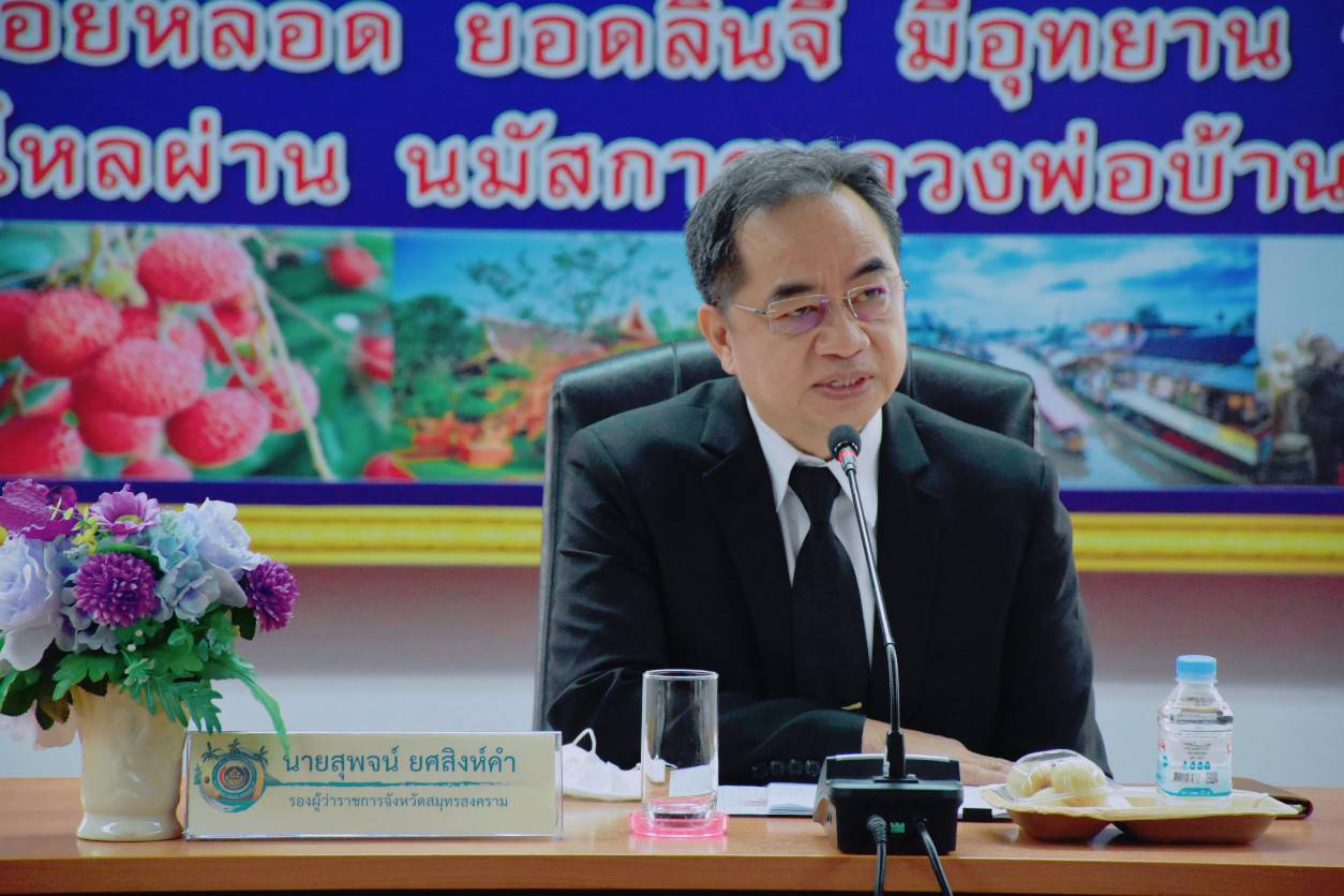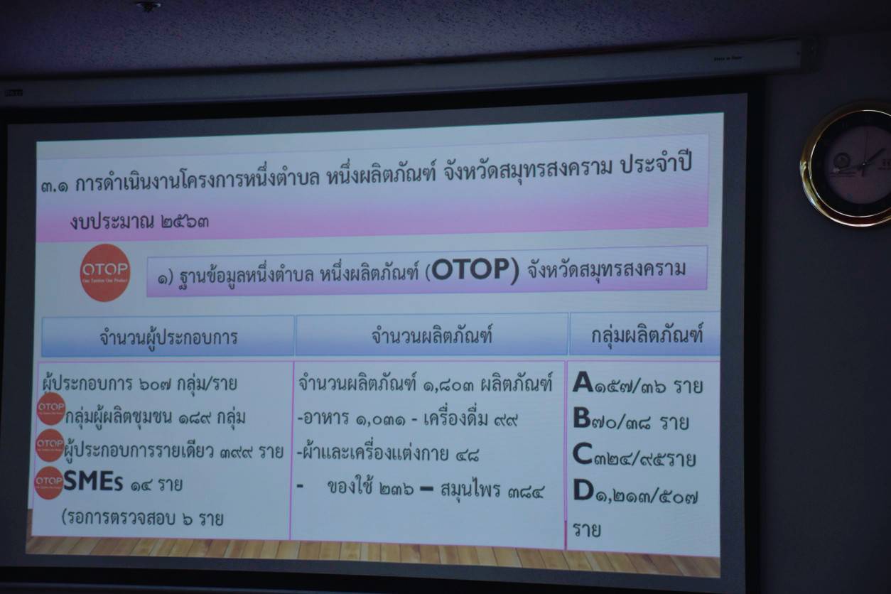 On October 27th, 2020 at 01.30pm, Mr. Jirayus Poolsawat, Acting Chief of Business Department, Samut Songkhram Education Center, Suan Sunandha Rajabhat University attended a meeting of the sub-committee of One Tumbol One Product at the provincial level, while Mr. Supot Yotsingkham, Deputy Governor of Samut Songkhram Province, chaired the meeting, along with chiefs of government agencies, president of the provincial industry council, president of the Provincial OTOP Network, local leaders, OTOP entrepreneurs and related agencies that attended the meeting to consider preparation for the action plan for the OTOP Nawatwithi Community Tourism Project according to the recommendations of the Office of the Auditor-General and to review the classification of OTOP Nawatwithi Tourism Communities, with a summary of the implementation of the One Tambol Project One Product in Samut Songkhram Province for the fiscal year 2020 which contains a database of OTOP products in Samut Songkhram Province, at Bang Khonthi Meeting Room, 3rd Floor, Samut Songkhram City Hall.