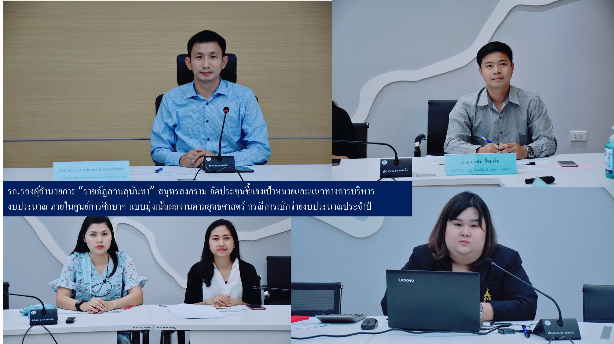 On December 9th, 2020 at 11:00am, Prof. Dr. Kaenpet Saranontawat, Deputy Director for Administration, Samut Songkhram Education Center, Suan Sunandha Rajabhat University along with Mr. Eakkachon Noyngern, Chief of the Office, held a meeting to clarify goals and budget management guidelines within the education center according to the strategy in the case of disbursement of the annual budget, for the Planning Department and the Finance Department to discuss and solve the problems, at Phan Pruksa Meeting Room, 5th Floor, Health Rehabilitation Operation Building.