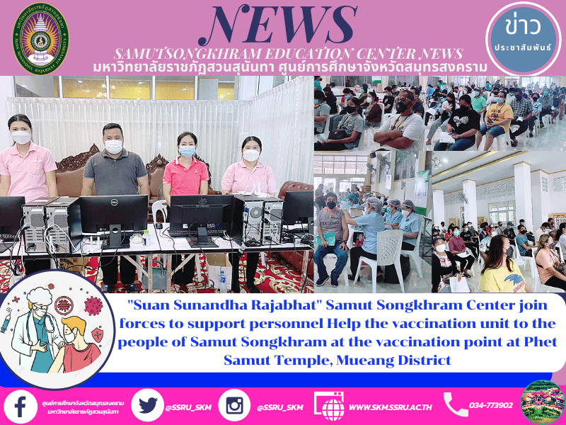 "Suan Sunandha Rajabhat" Samut Songkhram Center join forces to support personnel Help the vaccination unit to the people of Samut Songkhram at the vaccination point at Phet Samut Temple, Mueang District