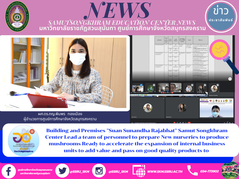 On 26 October, 2021 at 13.00 hr., Asst. Prof. Dr.Pimporn Thongmuang, Director of Samut Songkhram Education Center, chaired the meeting to prepare for the meeting of the committee of the front office of the Ministry of Higher Education, Science, Research and Innovation in supporting the development of the province to drive Thailand together with the board responsible for the U2T project through Google Hangout Meet to change the way of working of the U2T project in accordance with the integrated economic and social upgrading of the district (university to subdistrict building a glass root for the country) and the Rajabhat University Strategic Project for Local Development, in order to create cooperation in promoting, supporting, creating mechanisms for a spatial integrated driving process, including job creation, community, career development for the community to be able to self-reliant in a sustainable way which is a way to solve problems and improve the economy and society for those affected by the COVID-19 pandemic.