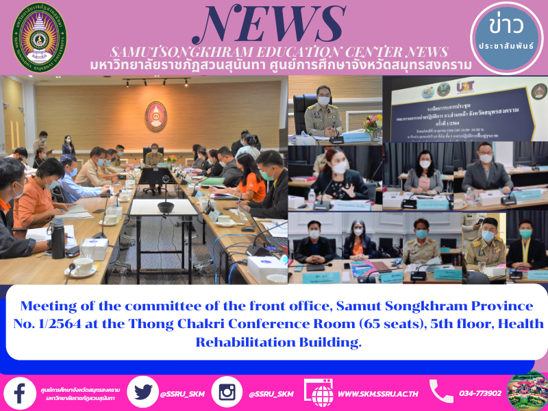 On 29 October, 2021 at 14:00 hr., Assoc. Prof. Dr. Chutikarn Srivibul, President of Suan Sunandha Rajabhat University, Samut Songkhram Education Center assigned Asst. Prof. Dr. Suwaree Yodchim, Vice President for Research and Development to represent in the meeting, along with Assoc. Prof. Dr. Rotchana Chandrasa, Director of Research and Development Institute, Asst. Prof. Dr. Wat Ploysri, Deputy Director of Academic Services and the Academic Service Working Group Research and Development Institute, and Asst. Prof Dr. Pimporn Thongmuang, Director of Samut Songkhram Education Center that organized a meeting of the working group of the Front-line of the Ministry of Higher Education, Science, Research and Innovation to support the development of the province in order to drive Thailand together, “Front-line Unit of the Ministry of Higher Education, Science, Research and Innovation of Samut Songkhram Province 1/2564”. In the meeting, the education center personnel, chiefs of government agencies, local government organization, and related staff attended and listened to reports on the progress of the operations of the 7 universities responsible for the project in the area to discuss the guidelines for such operations for maximum benefits and to solve [possible problems in the future.