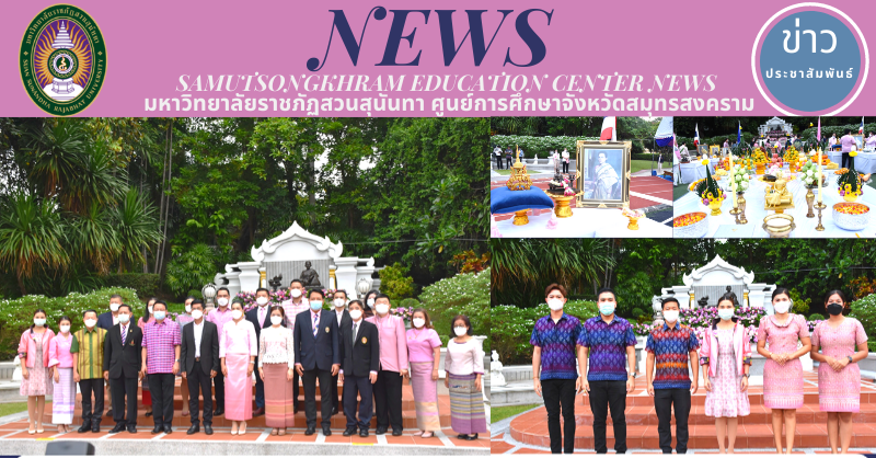 On 10 November 2021 at 07.00 hr., Asst. Prof. Dr. Pimporn Thongmuang, the Director Samut Songkhram Education Center, Suan Sunandha Rajabhat University, together with Mr. Eakkachon Noyngern, Chief of the Office, Mr. Jirayus Poolsawat, Acting Chief of Business Division, and personnel attended the worship and merit-making ceremony on the occasion of Birthday Anniversary of Lamented Majesty Sunanda Kumariratana Queen Consort that was organized by the Office of Arts and Culture. Acting President of Suan Sunandha Rajabhat University Council presided over the ceremony while Assoc. Prof. Dr. Chutikarn Srivibul, President of Suan Sunandha Rajabhat University, President of the Alumni Association Executives, and distinguished guests attended the ceremony at the courtyard in front of the Queen Sunandha Kumariratana Monument, Suan Sunandha Rajabhat University.