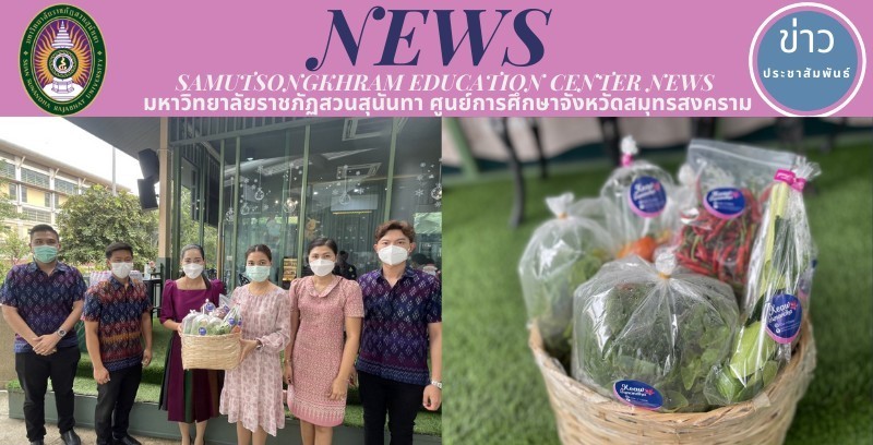 On 10 November 2021 at 10.00 hr., Asst. Prof. Dr. Pimporn Thongmuang, Director of Samut Songkhram Education Center, Suan Sunandha Rajabhat University along with Mr. Eakkachon Noyngern, Chief of the office and personnel to give vegetables and herbs to Assoc. Prof. Dr. Chutikarn Srivibul, President of Suan Sunandha Rajabhat University, which is the product of the Samut Songkhram Education Center according to the sufficiency concept. The vegetables that are brought include chillies, lemongrass, kaffir lime leaves, which are herbs for Tom Yum and have properties for health. In addition, there are Thai herbs and vegetables such as kale, watergrass and tomatoes that are grown within Samut Songkhram Provincial Education Center, Suan Sunandha Rajabhat University, which are herbicide-free in order to drive the establishment of "Thai Herbs Learning and Conservation Center of Suan Sunandha" for further academic service to community.