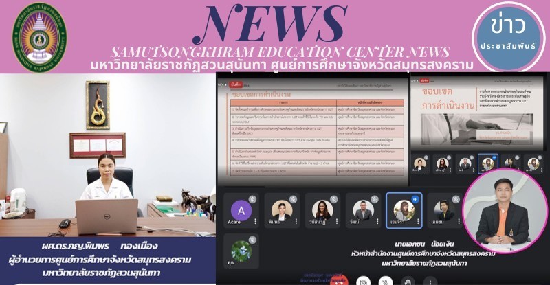 On 3 December 2021, from 03.00 - 04.00 hr., Asst. Prof. Dr. Pimporn Thongmuang, Director of Samut Songkhram Education Center, Suan Sunandha Rajabhat University, along with Mr. Eakkachon Noyngern, Chief of the Office and personnel in related departments attended the meeting on the scope of operations of the front line unit of the Ministry of Higher Education, Science, Research and Innovation in 2 provinces via Google Meet, in cooperation with the Research and Development Institute, Suan Sunandha Rajabhat University under the “Guidelines for the Operation in Supporting the Development of the Province and Thailand”. In this regard, the policy of driving Thailand together has been clarified as well as the demand, such as operational models of the Front Office Department in Samut Songkhram and Ranong Provinces