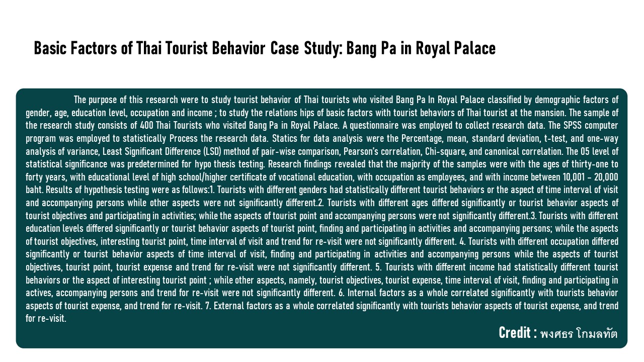 Basic Factors of Thai Tourist Behavior Case Study: Bang Pa in Royal Palace