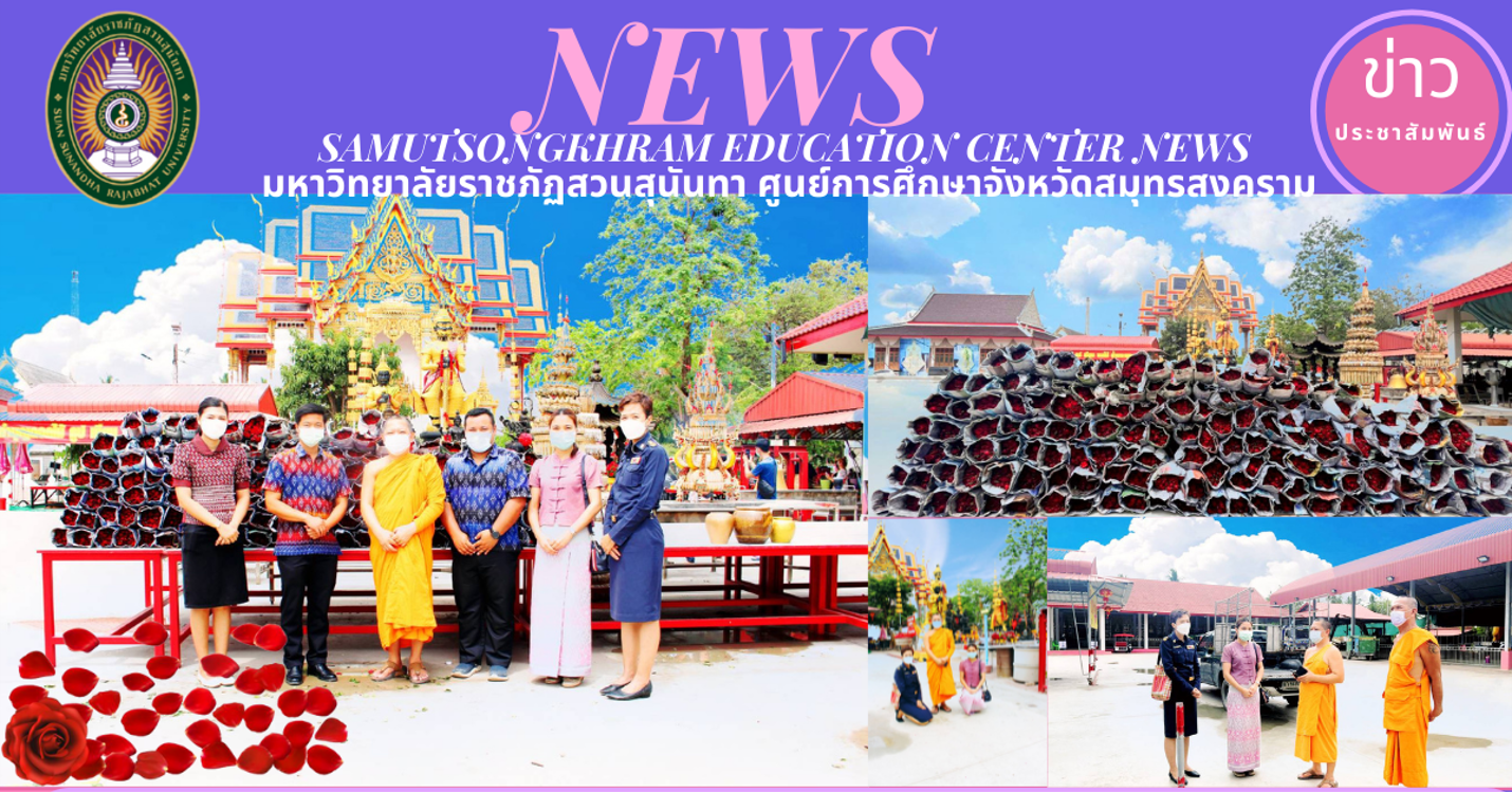 (8 March 2022) Time 09.00 Assistant Professor Dr. Pimporn Thongmuang, Director of Samut Songkhram Provincial Education Center Suan Sunandha Rajabhat University received roses from Assistant Abbot of Chulamanee Temple Samut Songkhram Province To study the benefits of research in the development of rose extraction Add new knowledge in academics to expand to people in the area Build a career, increase income