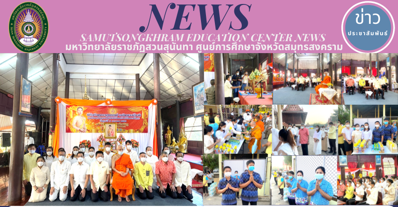 On 7 January 2022 at 07.00 hr., Asst. Prof. Dr. Pimporn Thongmuang, Director of Samut Songkhram Education Center, Suan Sunandha Rajabhat University along with Mr. Eakkachon Noyngern, Chief of the Office and personnel joined to make merit and offer food to monks on the occasion of the Royal Birthday of