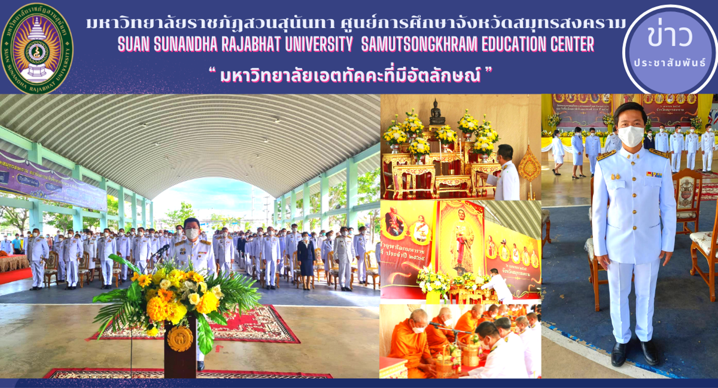 (April 6, 2022) at 8:00 a.m. Mr. Private Noi Ngoen, Head of the Samut Songkhram Provincial Education Center Office Suan Sunandha Rajabhat University Join the ceremony on the day of His Majesty King Buddha Yodfa Chulalok the Great and the commemoration of the Maha Chakri dynasty, with Mr. Khajon Srichavanothai, the governor of Samut Songkhram Province presided over the ceremony along with the heads of government agencies to attend the ceremony On the day of His Majesty King Buddha Yodfa Chulalok the Great and the Maha Chakri Memorial Day on April 6 of every year at the Samut Songkhram Technical College Activity Building