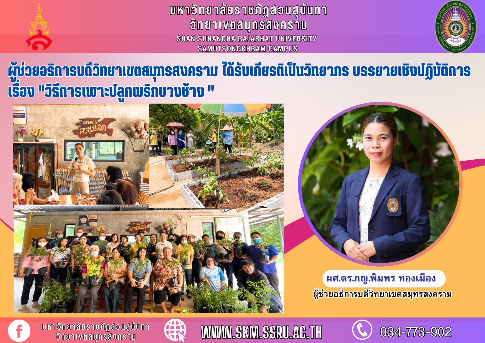 The Assistant President of Samut Songkhram Campus had the honor of being a guest speaker for a practical workshop on "Methods of Cultivating Bangchang Chili"