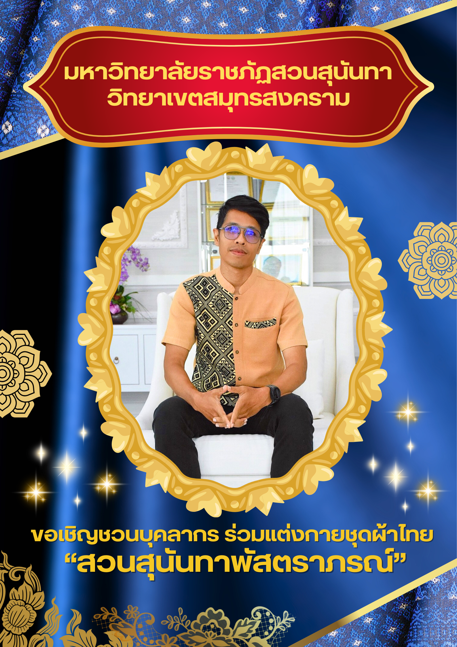 Invitation to join the Thai dress activity "Suan Sunandha Phatraphon" 2025 under the Identity Development Project of Suan Sunandha Rajabhat University to promote Thai dress and promote the value of preserving good Thai traditions, arts and culture.