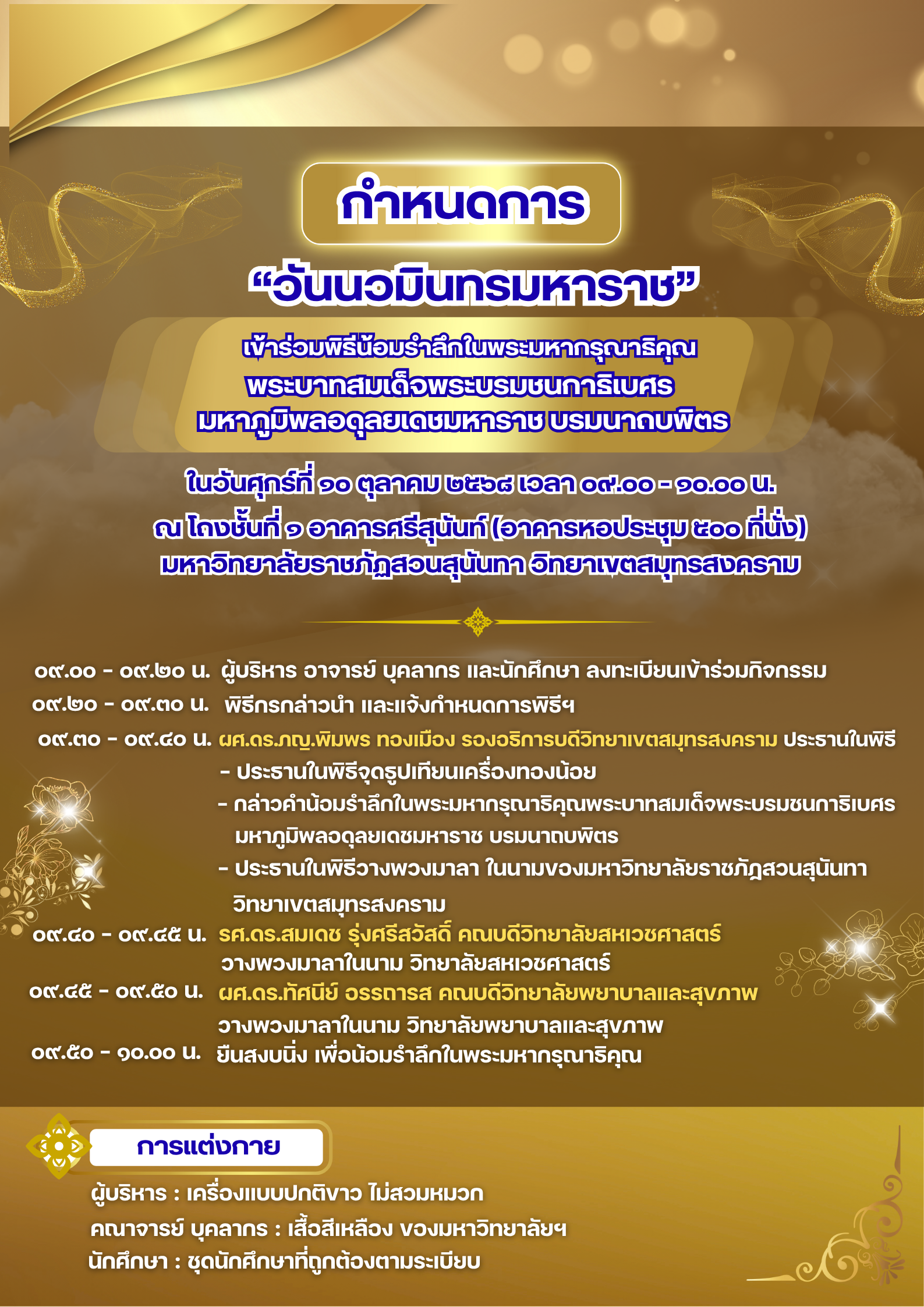 At the lobby on the 1st floor of the Sri Sunan Building (500-seat auditorium)