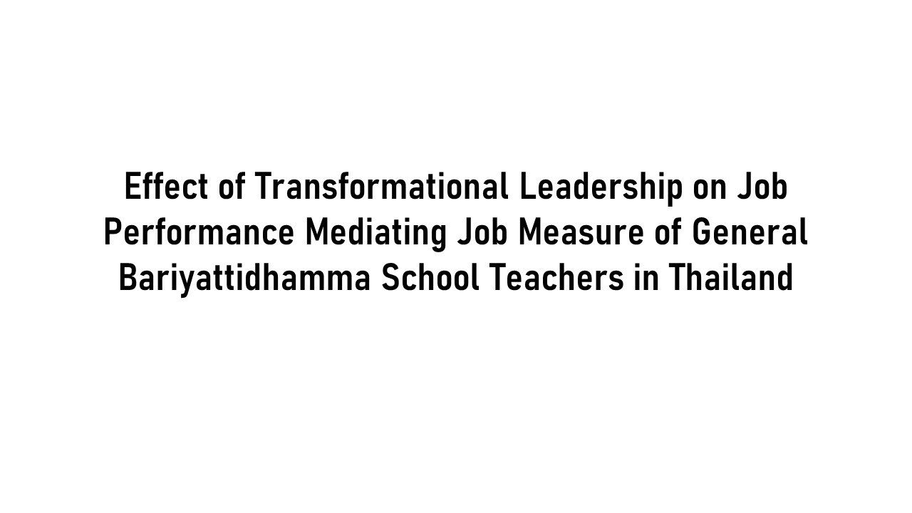 Home > News > > Effect of Transformational Leadership on Job Performance Mediating Job Measure of General Bariyattidhamma School Teachers in Thailand