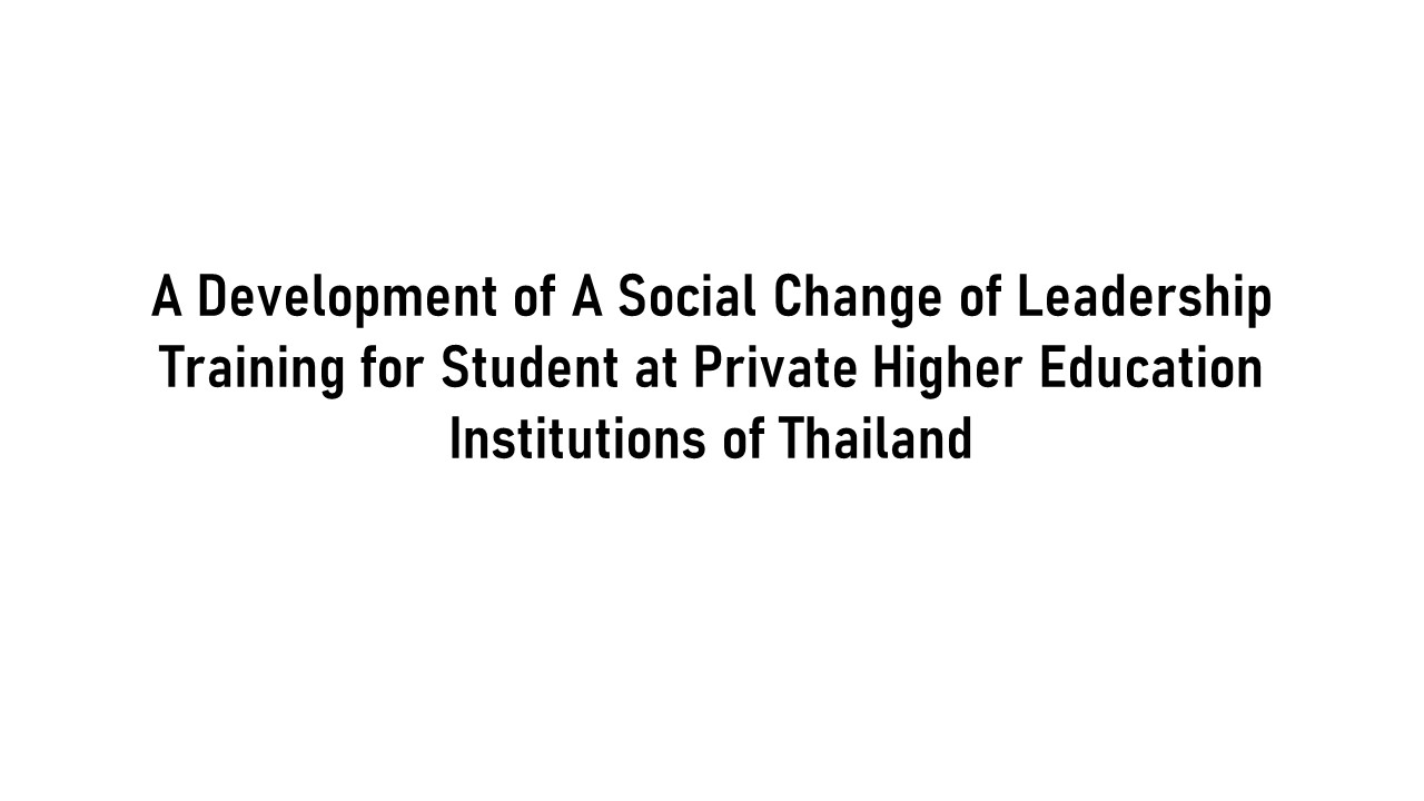 The purposes of this research were to 1) to development of a social change of leadership training for student at private higher education institutions of Thailand, and 2) to trial and to improve development of a social change of leadership training for student at private higher education institutions of Thailand. The sampling group consisted was 30 undergraduate students of private higher education institutions. The research tools were 1) an attitude measurement of social change leadership, and 2) a test for social change leadership. The statistics that used in data analysis was Independent t-test.