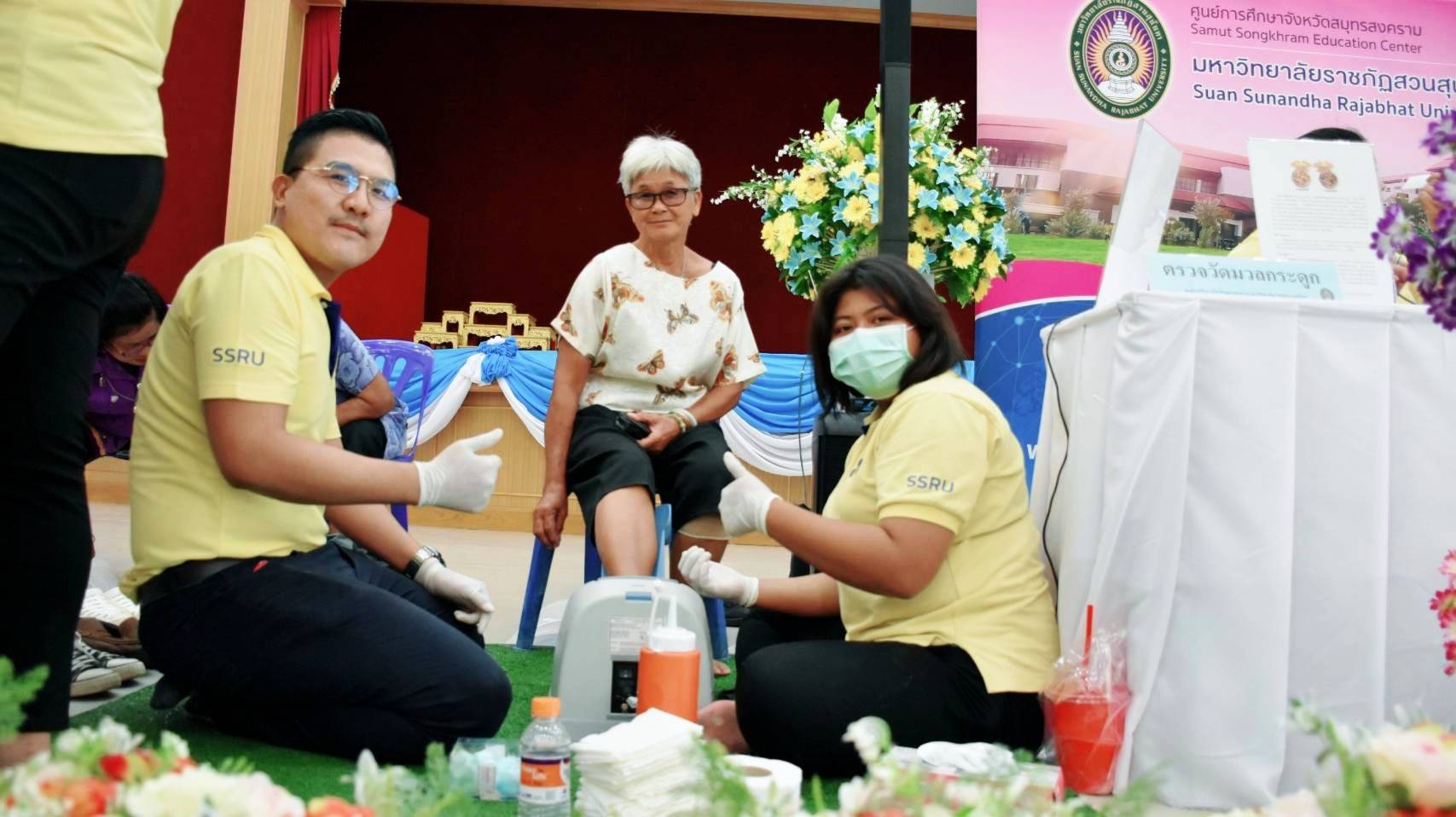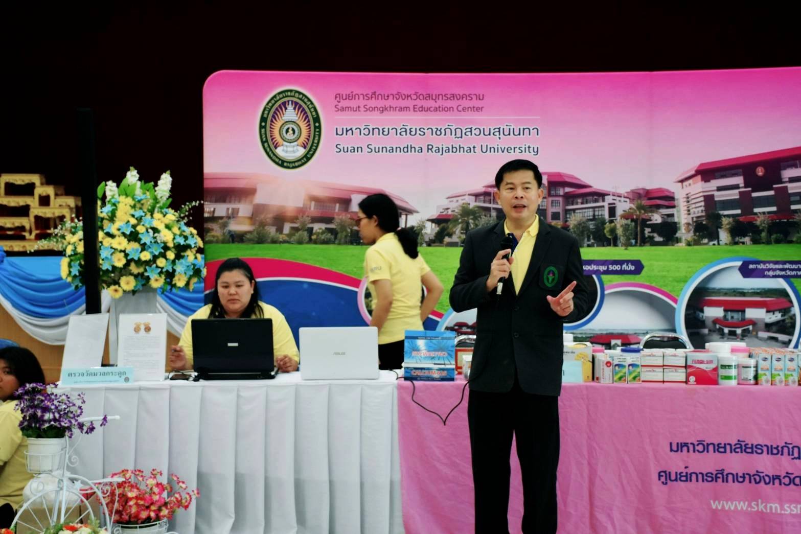 (29 ส.ค.62) เวลา 09.00 น. ศูนย์การศึกษาจังหวัดสมุทรสงคราม มหาวิทยาลัยราชภัฏสวนสุนันทา นำโดย ผศ.ดร.ภญ.พิมพร ทองเมือง ผู้อำนวยการฯ นำทีมคณะบุคลากร จัดกิจกรรมเวทีสุขภาพเคลื่อนที่ ภายใต้ โครงการ ให้ความรู้ผู้สูงอายุ สุขภาพกายดี สุขภาพใจดีมีสุข ร่วมกับองค์การบริหารส่วนจังหวัดสมุทรสงคราม เพื่อบำเพ็ญประโยชน์แก่ชุมชน สานต่อภารกิจหลักของมหาวิทยาลัย ในการให้บริการวิชาการและถ่ายทอดเทคโนโลยีแก่ชุมชนและสังคม (Provide Academic Services and Transfer Technology to communities and International Society) นั้น