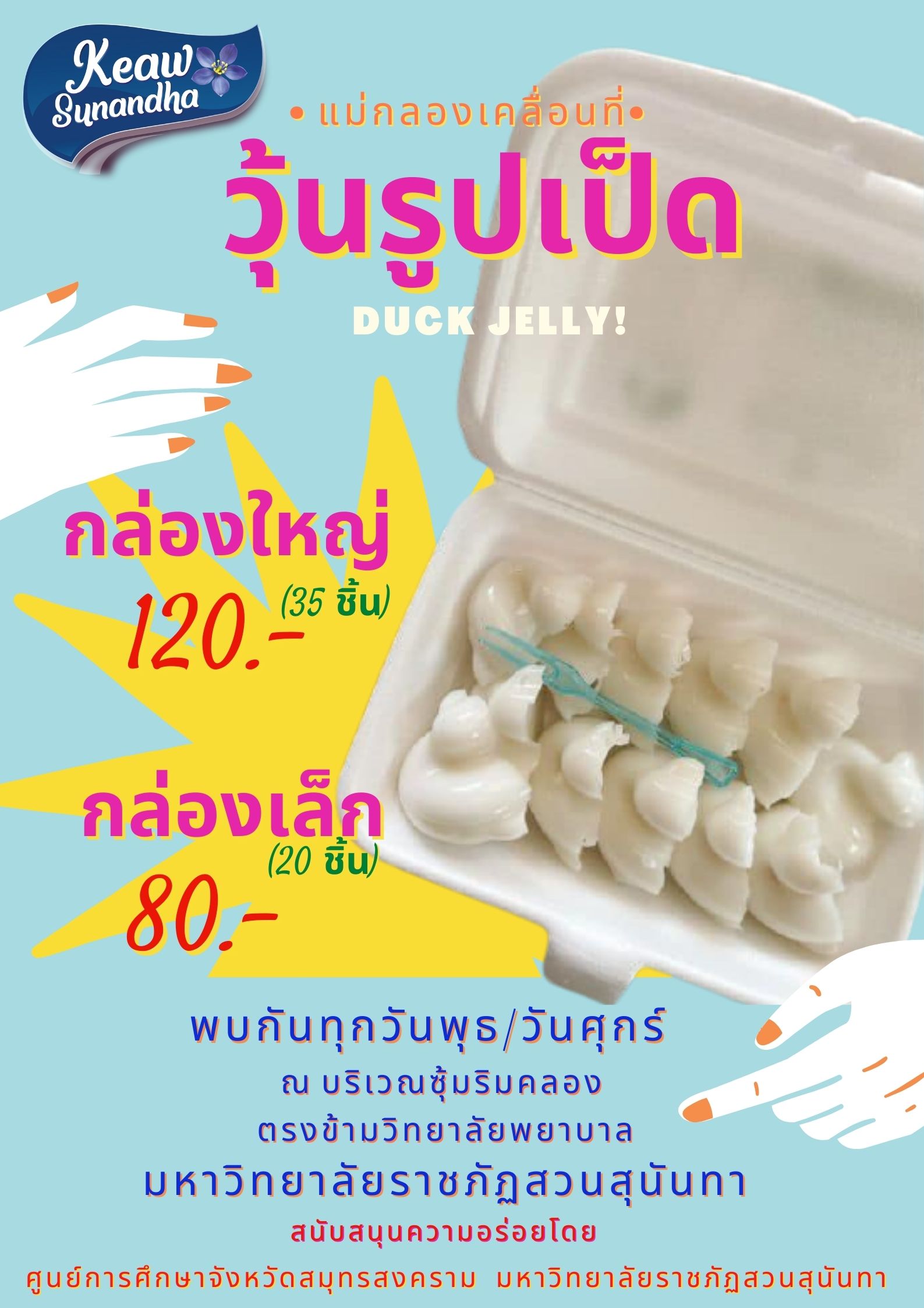 เปิดรับพรีออเดอร์ “วุ้นมะพร้าวรูปเป็ด” อร่อย เข้มข้น ของดีเมืองแม่กลอง - ขนาดบรรจุ จำนวน 20 ชิ้น/กล่อง ราคา 80 บาท - ขนาดบรรจุ จำนวน 35 ชิ้น/กล่อง ราคา 120 บาท พบกันได้ที่บูธประสัมพันธ์ ทุกวันพุธและวันศุกร์ ในตลาดนัด “แม่กลองเคลื่อนที่” ณ บริเวณซุ้