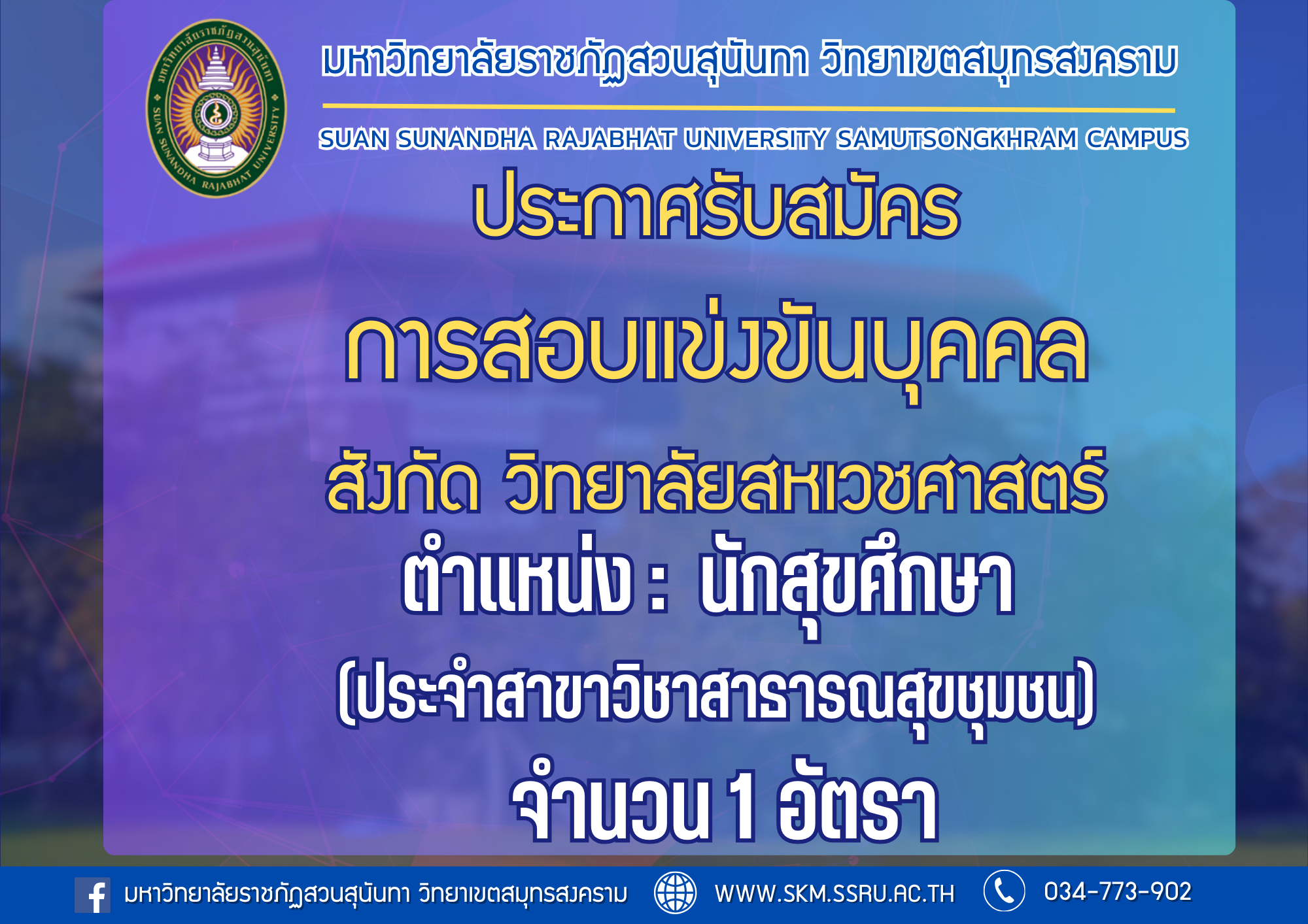 ประกาศรับสมัคร นักสุขศึกษา ประจำสาขาวิชาสาขาวิชาสาธารณสุขชุมชน (วิทยาลัยสหเวชศาสตร์).pdf
