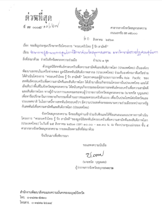 เวลา 10.00 น. ประชุมปรึกษาหารือโครงการ "ครอบครัวไทย รู้ รัก สามัคคี"
