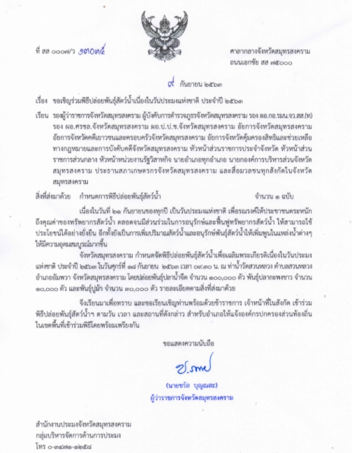 > เวลา 09.30 น.พิธีปล่อยพันธุ์สัตว์น้ำเนื่องในวันประมงแห่งชาติ ประจำปี ๒๕๖๓