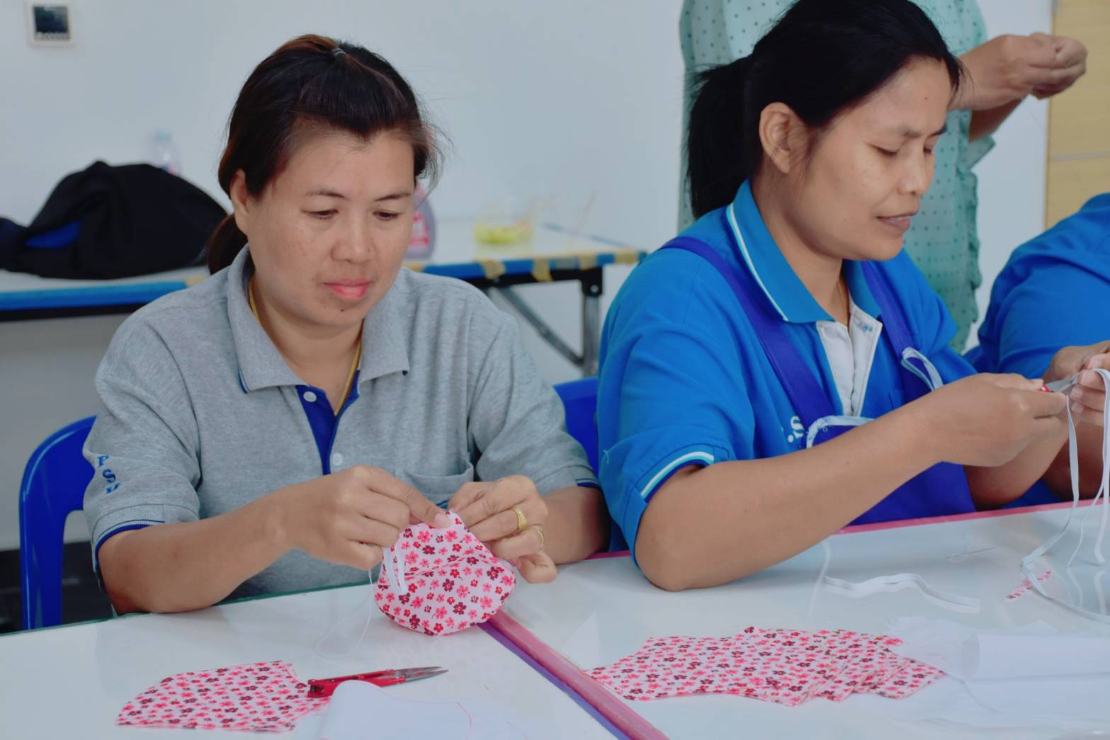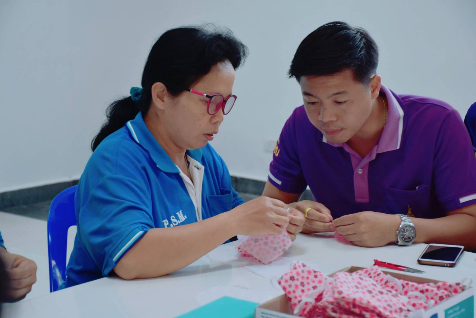 วันที่ 11 มี.ค. 63 เวลา 13.30 น. ศูนย์การศึกษาจังหวัดสมุทรสงคราม มหาวิทยาลัยราชภัฏสวนสุนันทา โดย ผศ.ดร.ภญ.พิมพร ทองเมือง ผู้อำนวยการฯ มอบหมายให้นายเอกชน น้อยเงิน หัวหน้าสำนักงานฯ นำคณะบุคลากร ร่วมจัดทำหน้ากากอนามัย โดยมีเป้าหมายการผลิตเป็นจำนวน 1,000 ชิ้น ทั้งนี้ได้ตระหนักถึงการป้องกันโรคติดต่อ”เชื้อไวรัส “Coronavirus disease 2019” (COVID-19) และการจัดทำหน้ากากอนามัย เพื่อนำไปเผยแพร่ให้ครอบครัวตนเองตลอดจนประชาชนทั่วไปได้รับทราบ รวมทั้งเป็นการลดภาระค่าใช้จ่ายของนักศึกษาและบุคลากรได้ ลดผลกระทบต่อสุขภาพ เพื่อป้องกันไม่ให้เกิดการแพร่ระบาดของโรคในวงกว้าง และเพื่อสร้างความตระหนักให้แก่ประชาชนในการเฝ้าระวังและการป้องกันการติดเชื้อไวรัสโคโรนา 2019