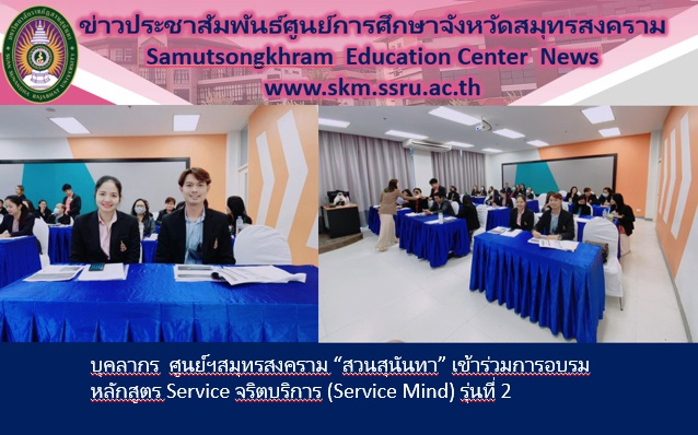 วันนี้ (12 พ.ย.63) นางสาวอภิญญา มุกดาธนพงศ์ รักษาการผู้จัดการหอพักนักศึกษา พร้อมด้วย นายอริยเมศฐ์ ศิริฤกษ์รัตนา เจ้าหน้าที่บริหารงานทั่วไป ศูนย์การศึกษาจังหวัดสมุทรสงคราม มหาวิทยาลัยราชภัฏสวนสุนันทา เข้าร่วมการอบรมหลักสูตร Service จริตบริการ (Service MindX รุ่นที่ 2 ซึ่งจัดขึ้นโดยมหาวิทยาลัยราชภัฏสวนสุนันทา วิทยาเขตนครปฐม