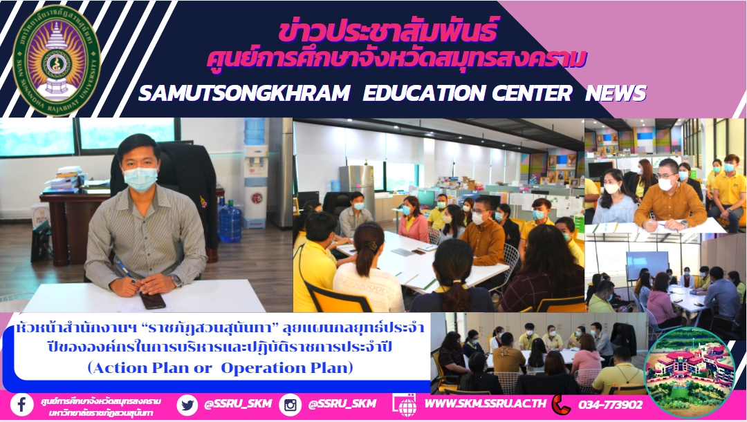วันที่ 15 กุมภาพัน 2564 นายเอกชน น้อยเงิน หัวหน้าสำนักงาน ศูนย์การศึกษาจังหวัดสมุทรสงคราม มหาวิทยาลัยราชภัฏสวนสุนันทา ประชุมหารือบุคลากรเพื่อกำหนดและทบทวน แผนกลยุทธ์ในการบริหารและปฏิบัติราชการประจำปี (Action Plan or Operation Plan) โอกาสนี้ นายเอกชน น้อยเงิน ได้กล่าวชี้แจงนโยบายต่อที่ประชุมว่า ศูนย์การศึกษาฯจำเป็นต้องมีการวางแผน (Planning) เนื่องจากเป็นตัวกำหนดทิศทาง เป้าหมาย วิธีดำเนินการ เพื่อให้การปฏิบัติงานเป็นได้อย่างมีประสิทธิภาพ บรรลุตามวัตถุประสงค์ที่ต้องการภายในเวลาที่กำหนด การวางแผน (Planning) ยังเป็นปัจจัยที่มีความสำคัญที่จะทำให้สามารถดำเนินงานได้สอดคล้องกับกระบวนการทำงาน รวมทั้งสามารถตรวจสอบและกำหนดแนวทางการทำงานในอนาคตได้เพื่อความสำเร็จของหน่วยงาน ซึ่งในวาระการประชุม นายเอกชน น้อยเงิน ได้ชี้แจงรายละเอียดเกี่ยวกับวิธีการดำเนินการ งบประมาณ และผู้รับผิดชอบ รูปแบบของแผนงาน (Program) หรือ โครงการ (Project) ที่ครอบคลุมทรัพยากรทั้งหมดที่หน่วยงานมีอยู่ ตลอดจนการพยากรณ์สภาวะแวดล้อมทั้งภายในและภายนอก และการช่วยเพิ่มประสิทธิภาพและประสิทธิผลในการดำเนินงานของศูนย์การศึกษาฯ