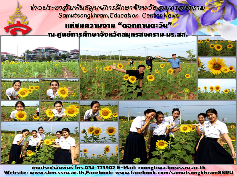 นิสิตและนักศึกษาแห่ชมความงาม "ดอกทานตะวัน" แวะชมและถ่ายภาพความสวยงาม จึงขอเชิญชวนนักศึกษา บุคลากร และคณาจารย์ ชมดอกทานตะวันบานสะพรั่งได้แล้วที่ ศูนย์การศึกษาจังหวัดสมุทรสงคราม มหาวิทยาลัยราชภัฏสวนสุนันทา