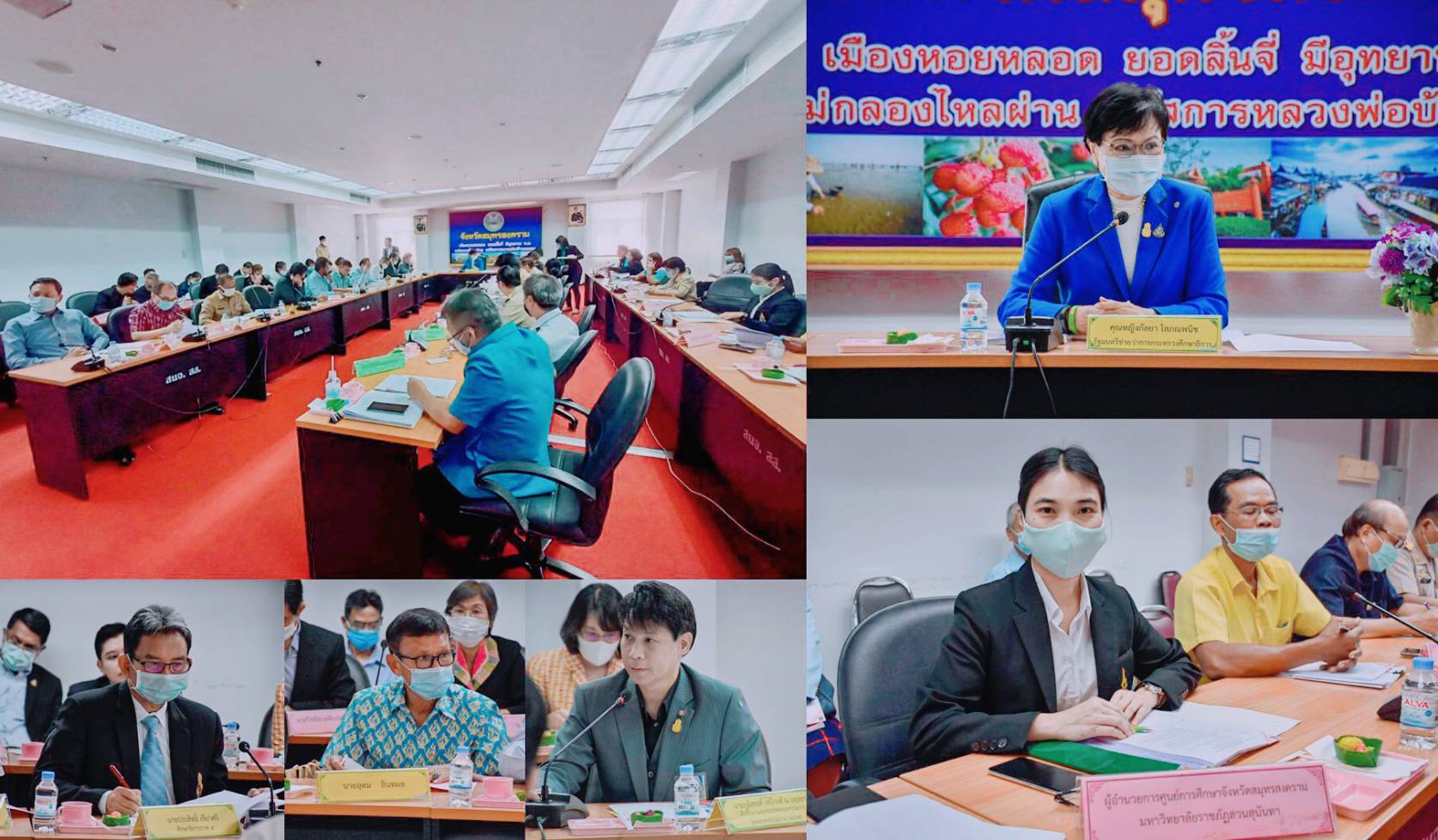 วันนี้ (25 ก.ย. 63) เวลา 10.30 น. ผศ.ดร.ภญ.พิมพร ทองเมือง รักษาการผู้อำนวยการศูนย์การศึกษาจังหวัดสมุทรสงคราม มหาวิทยาลัยราชภัฏสวนสุนันทา ร่วมให้การต้อนรับ สมุทรสงคราม คุณหญิงกัลยา โสภณพนิช รัฐมนตรีช่วยว่าการกระทรวงศึกษาธิการพร้อมคณะ ลงพื้นที่ติดตามการขับเคลื่อนไทยไปด้วยกันที่จังหวัดสมุทรสงคราม โดยมีนายวงเทพ เขมวิรัตน์ รองผู้ว่าราชการจังหวัดสมุทรสงคราม พร้อมด้วยหัวหน้าส่วนราชการ ข้าราชการ ประชาชน และหน่วยงานที่เกี่ยวข้องให้การต้อนรับ การลงพื้นที่ติดตามการขับเคลื่อนไทยไปด้วยกันระดับพื้นที่จังหวัดสมุทรสงคราม ดังกล่าว เป็นการติดตามเพื่อแก้ไขปัญหาหลักๆ 5 อย่าง ประกอบด้วย 1. ปัญหาน้ำเสียคลองวัดประดู่ 2. ปัญหาการบริหารจัดการน้ำประปา 3. ปัญหาท่าเทียบเรือปากมาบชำรุดทรุดโทรม 4. ปัญหาปากคลองปากมาบตื้นเขิน 5. ปัญหาผลผลิตทางการเกษตรตกต่ำ (ปลากะพง) และ 6. ปัญหาประมง (ปัญหาเชิงนโยบาย) โดยมีหน่วยงานที่รับผิดชอบ และภาคประชาชน เข้าร่วมรายงานถึงปัญหาที่เกิดขึ้น และเสนอแนะวิธีการแก้ไขปัญหา ณ ห้องประชุมบางคนที ชั้น 3 ศาลากลางจังหวัดสมุทรสงคราม