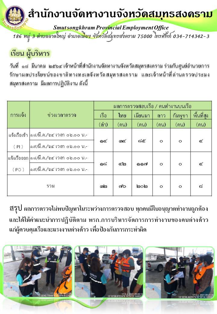 > สรุป ผการตรวจไม่พบปัญหาในระหว่างการครวจสอบ ทุกคนมีใบอนุญาตทำงานถูกต้อง และได้ให้คำแนะนำการปฏิบัติตาม พรก.การบริหารจัดการการทำงานของคนต่างด้าว แก่ผู้ควบคุมเรือนละแรงงานต่างด้าว เพื่อป้องกันการกระทำผิด