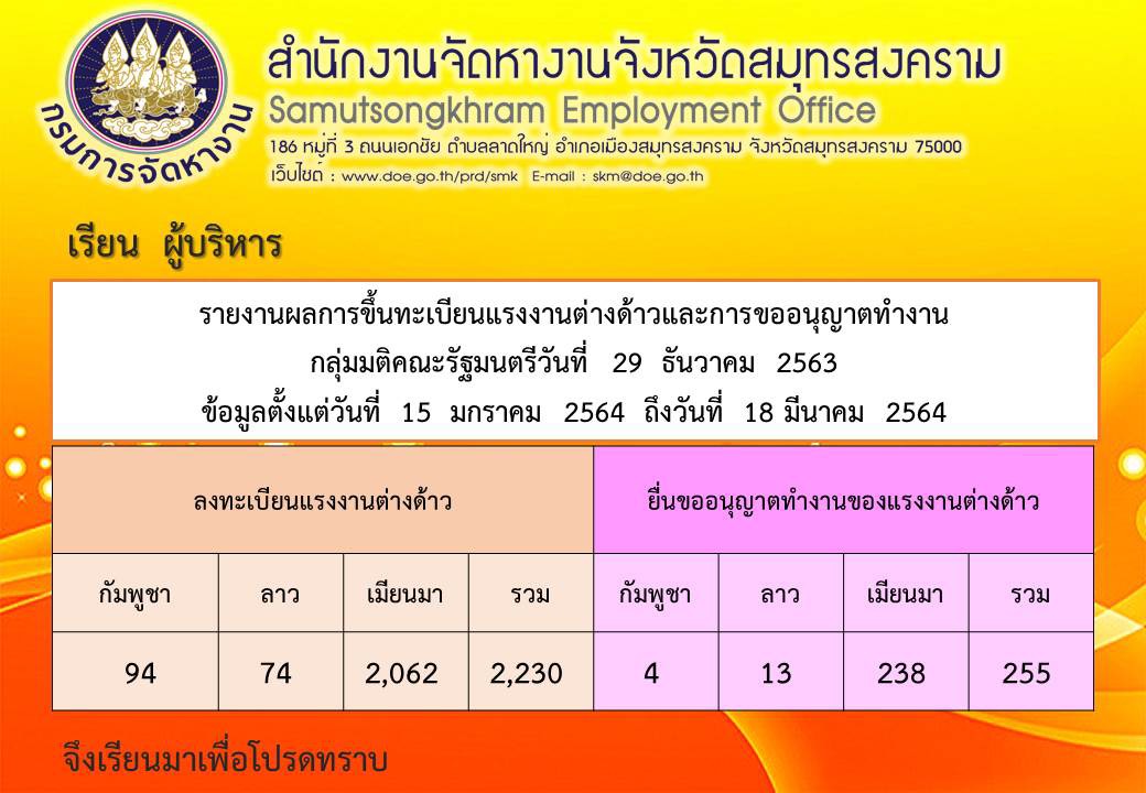 > รายงานผลการขึ้นทะเบียนแรงงานต่างด้าวและการขออนุญาตทำงาน