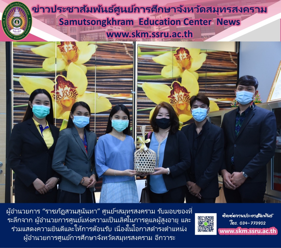 เช้านี้ (5 ก.พ.64) ผู้ช่วยศาสตราจารย์ ดร.ภญ.พิมพร ทองเมือง ผู้อำนวยการศูนย์การศึกษาจังหวัดสมุทรสงคราม มหาวิทยาลัยราชภัฏสวนสุนันทา รับมอบของที่ระลึกจาก ผู้ช่วยศาสตราจารย์ ดร.สุจิตรา อู่รัตนมณี ผู้อำนวยการศูนย์แห่งความเป็นเลิศในการดูแลผู้สูงอายุ และคณะบุคลากร ร่วมแสดงความยินดีและให้การต้อนรับ เนื่องในโอกาสดำรงตำแหน่ง ผู้อำนวยการศูนย์การศึกษาจังหวัดสมุทรสงคราม อีกวาระ