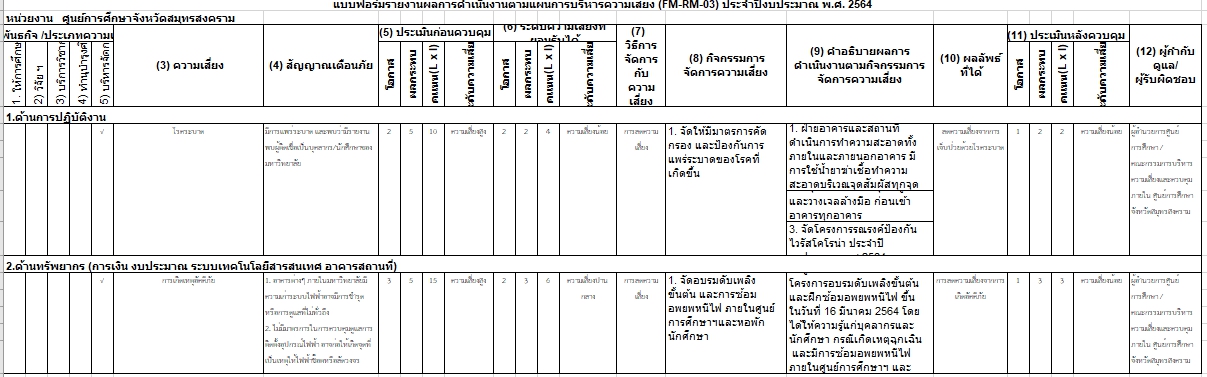 > แบบฟอร์มรายงานผลการดำเนินงานตามแผนการบริหารความเสี่ยง (FM-RM-03) ประจำปีงบประมาณ พ.ศ. 2564