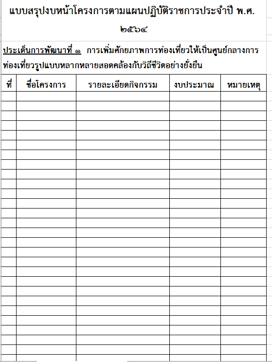> แบบสรุปงบหน้าโครงการตามแผนปฏิบัติราชการประจำปี พ.ศ. 2564