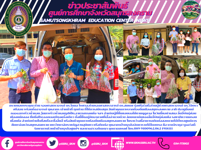 หน้าหลัก > ข่าว > ข่าวประชาสัมพันธ์ > กราบขอบพระคุณ ท่าน รองศาสตราจารย์ ดร.โกมล ไพศาล,ท่านรองศาสตราจารย์ ดร.สมเดช รุ่งศรีสวัสดิ์,ท่านผู้ช่วยศาสตราจารย์ ดร.วิจิตรา ศรีสอน พร้อมทั้งอาจารย์ บุคลากร เจ้าหน้าที่ ทุกท่าน ที่ให้การสนับสนุน สินค้าคุณภาพจากท้องถิ่นเมืองสมุทรสงคราม อาทิ ปลาทูนึ่งแม่กลอ