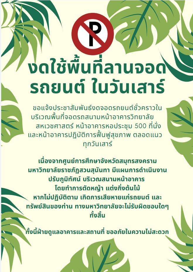 ขอแจ้งประชาสัมพันธ์งดจอดรถยนต์ชั่วคราวใน