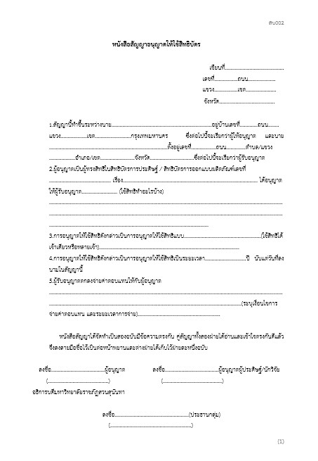 > หนังสือสัญญาอนุญาตให้ใช้สิทธิบัตร