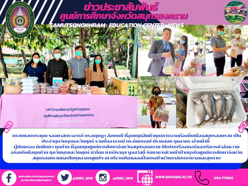 กราบขอบพระคุณ รองศาสตราจารย์ ดร.กฤษฎา สังขมณี ที่อุดหนุนสินค้าคุณภาพจากท้องถิ่นเมืองสมุทรสงคราม เป็นประจำทุกวันพุธและวันศุกร์ รวมทั้งอาจารย์ ดร.กันตพงษ์ ปราบสงบ บุคลากร เจ้าหน้าที่