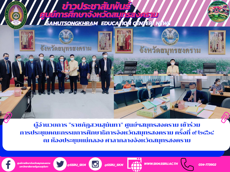 > ผู้อำนวยการ "ราชภัฏสวนสุนันทา" ศูนย์ฯสมุทรสงคราม เข้าร่วม การประชุมคณะกรรมการศึกษาธิการจังหวัดสมุทรสงคราม ครั้งที่ ๙/๒๕๖๔ ณ ห้องประชุมแม่กลอง ศาลากลางจังหวัดสมุทรสงคราม