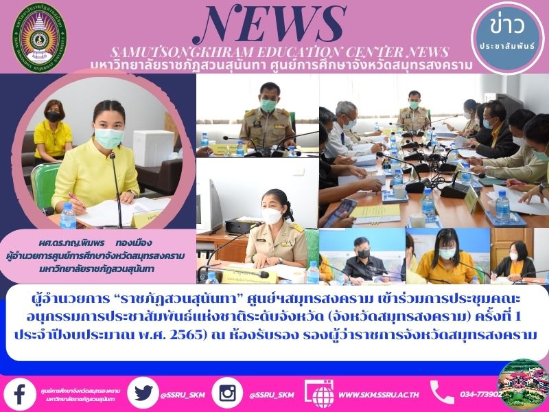 วันนี้(27 ธ.ค. 64) เวลา 09.30 น. ผู้ช่วยศาสตร์จารย์ ดร.ภญ.พิมพร ทองเมือง ผู้อำนวยการศูนย์การศึกษาจังหวัดสมุทรสงคราม มหาวิทยาลัยราชภัฏสวนสุนันทา เข้าร่วมการประชุมคณะอนุกรรมการประชาสัมพันธ์แห่งชาติระดับจังหวัดภาคท่องเที่ยวสะท้อนปัญหาขอขยายการพักชำระหนี้ โดยมีนายอนุกูล เรือนแก้ว ปลัดจังหวัดสมุทรสงคราม เป็นประธานการประชุมฯ พร้อมด้วยนางฐานิยา นิยมญาติ ประชาสัมพันธ์จังหวัดสมุทรสงคราม ทำหน้าที่ฝ่ายเลขาฯ และ คณะอนุกรรมการฯ เข้าร่วมประชุม เพื่อรับทราบแนวทางการขับเคคลื่อนแผนการประชาสัมพันธ์แห่งชาติ ฉบับที่ 5 พ.ศ.2563-2565 (ฉบับปรับปรุงให้สอดคล้องกับยุทธศาสตร์ชาติ 20 ปี)ไปสู่การปฏิบัติระดับจังหวัด ประจำปีงบประมาณ พ.ศ. 2565 โดยเฉพาะมิติของการบริหารจัดการข้อมูลข่าวสารในพื้นที่ให้สอดคล้องกับเรื่องสื่อสารที่สำคัญภายในประเทศ และด้านต่างประเทศ รวม 11 เรื่อง ภายในประเทศ 7 เรื่อง และต่างประเทศ 4 เรื่อง