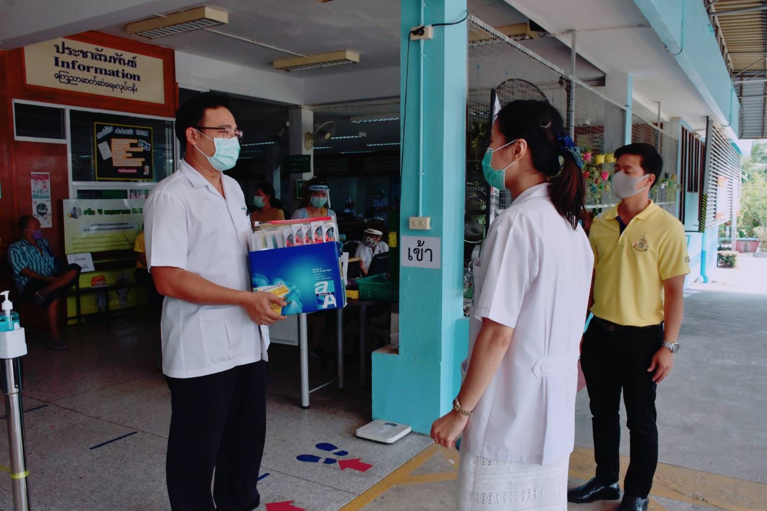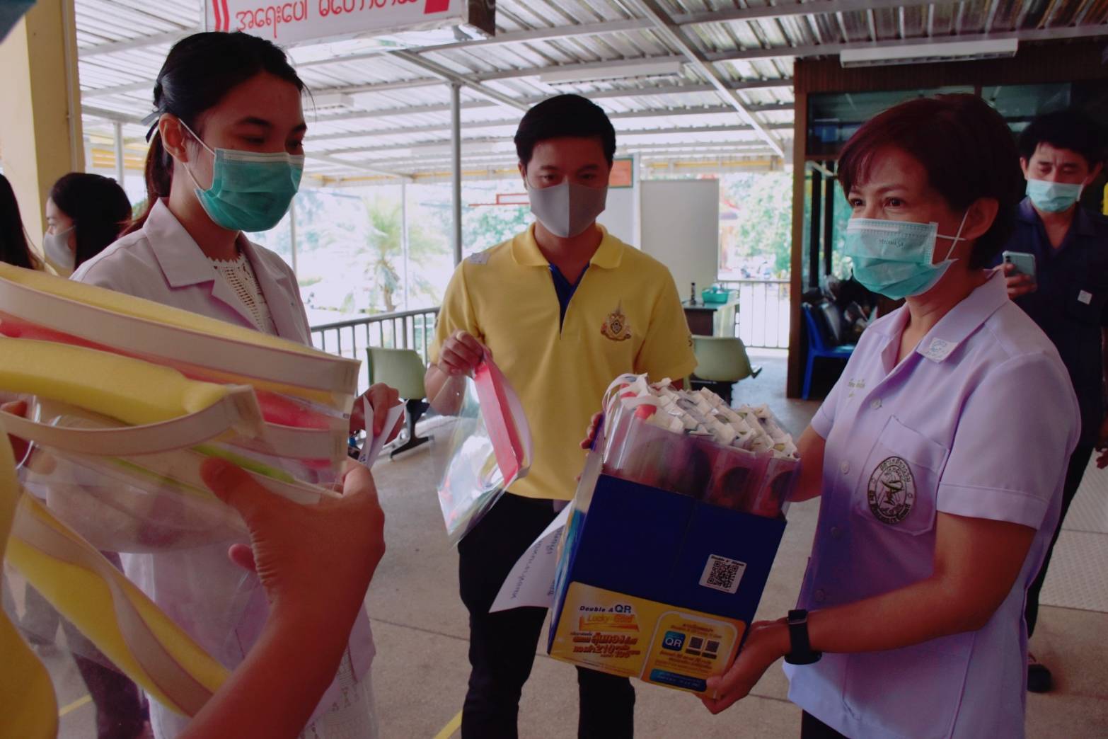 (30 มี.ค.63) เวลา 14.30 น. ผศ.ดร.ภญ.พิมพร ทองเมือง รักษาการผู้อำนวยการศูนย์การศึกษาจังหวัดสมุทรสงคราม มหาวิทยาลัยราชภัฏสวนสุนันทา พร้อมด้วยนายเอกชน น้อยเงิน หัวหน้าสำนักงานฯ ,นางสาวอภิญญา มุกดาธนพงศ์ รักษาการผู้จัดการหอพักนักศึกษา และบุคลากร เดินทางมอบหน้ากาก - FaceShieldDIY ให้แก่ โรงพยาบาลอัมพวา และโรงพยาบาลนภาลัย จำนวนโรงพยาบาลละ 100 ชิ้น เพื่อส่งต่อให้แพทย์ พยาบาล และเจ้าหน้าที่ไว้ใช้สวมใส่ป้องกันเชื้อโรค ขณะปฏิบัติงานตรวจรักษา Covid-19 และการลดความเสี่ยงการติดเชื้อการแพร่กระจายของเชื้อไปสู่ผู้ป่วยที่เข้ามารับบริการ โดย ศูนย์การศึกษาจังหวัดสมุทรสงครามฯ มีความห่วงใยผู้ที่ให้บริการประชาชนอย่างต่อเนื่องและมีความเสี่ยงในทุกพื้นที่ของประเทศไทย จึงจัดโครงการ “SSRU เสริมพลังสู้ฝ่าวิกฤตโควิด-19” ด้วยหน้ากาก - FaceShieldDIY เพื่อช่วยชะลอการแพร่ระบาดในกลุ่มหัวหน้าส่วนที่มีความเสี่ยงในพื้นที่ต่างๆ โดยจัดให้บุคลากรผลิตหน้ากาก FaceShieldDIY อย่างต่อเนื่อง