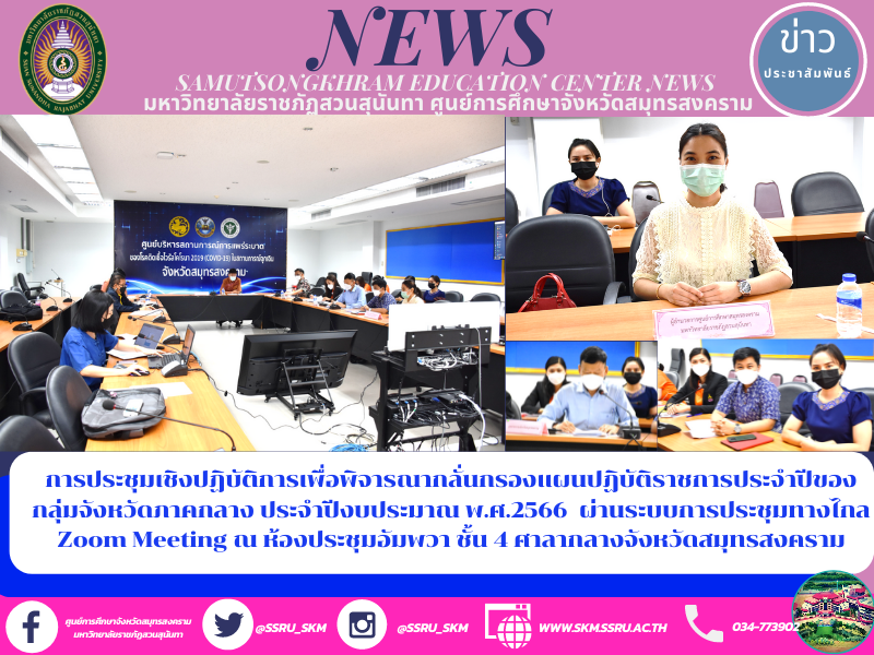 การประชุมเชิงปฏิบัติการเพื่อพิจารณากลั่นกรองแผนปฏิบัติราชการประจำปีของกลุ่มจังหวัดภาคกลาง ประจำปีงบประมาณ พ.ศ.2566 ผ่านระบบการประชุมทางไกล Zoom Meeting ณ ห้องประชุมอัมพวา ชั้น 4 ศาลากลางจังหวัดสมุทรสงคราม