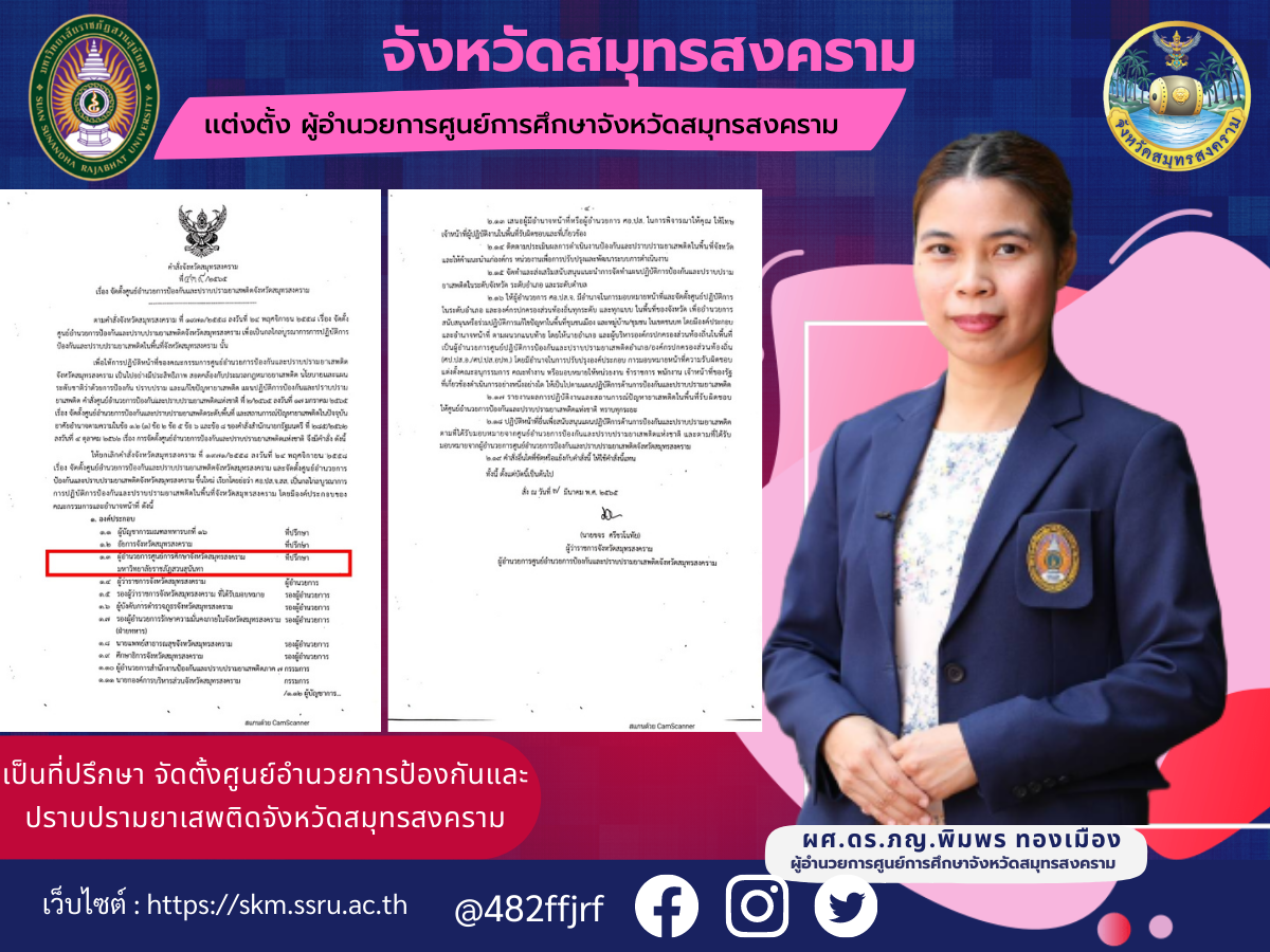 จังหวัดสมุทรสงคราม เเต่งตั้ง ผู้อำนวยการศูนย์การศึกษาจังหวัดสมุทรสงคราม เป็นที่ปรึกษา จัดตั้งศูนย์อำนวยการป้องกันและปราบปรามยาเสพติดจังหวัดสมุทรสงคราม