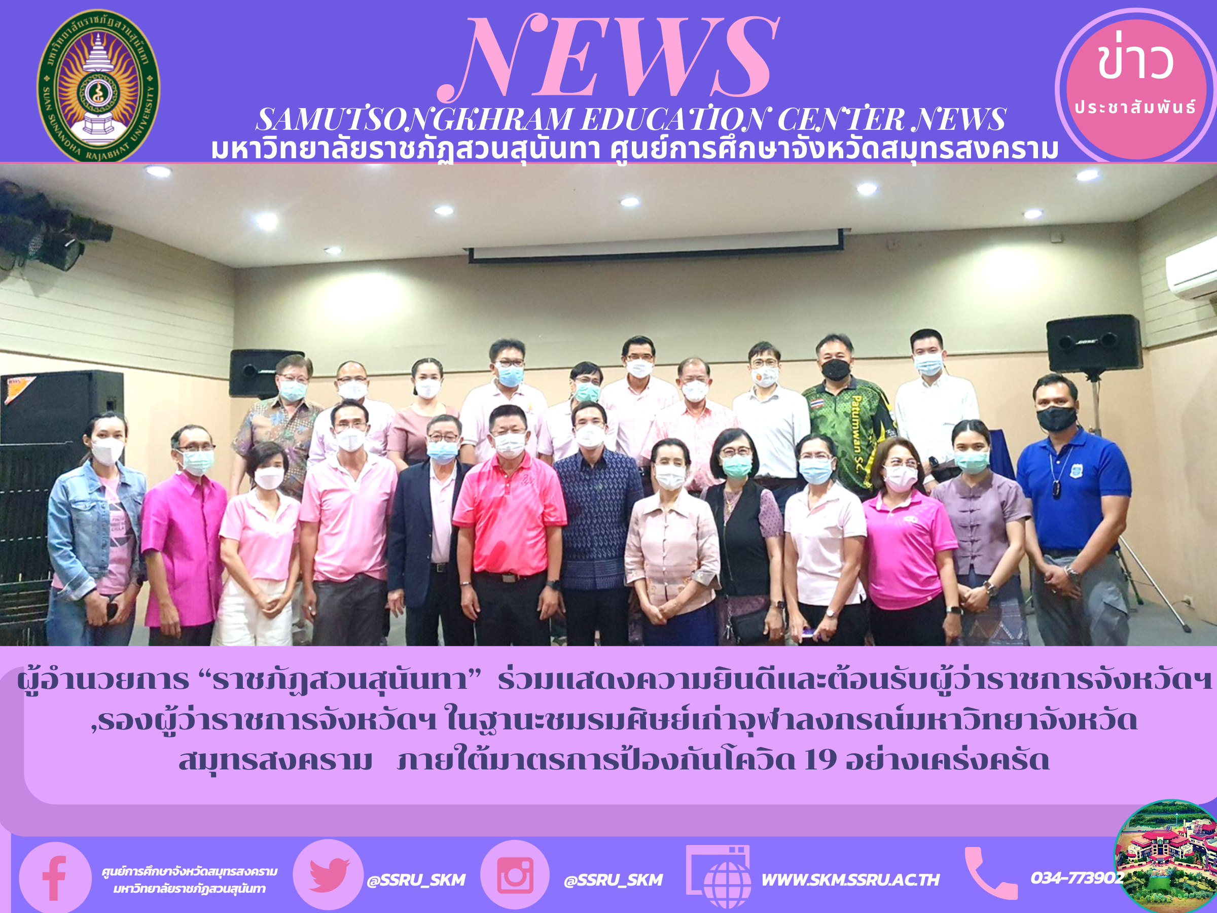 ผู้อำนวยการ “ราชภัฏสวนสุนันทา” ร่วมแสดงความยินดีและต้อนรับผู้ว่าราชการจังหวัดฯ ,รองผู้ว่าราชการจังหวัดฯ ในฐานะชมรมศิษย์เก่าจุฬาลงกรณ์มหาวิทยาจังหวัดสมุทรสงคราม ภายใต้มาตรการป้องกันโควิด 19 อย่างเคร่งครัด